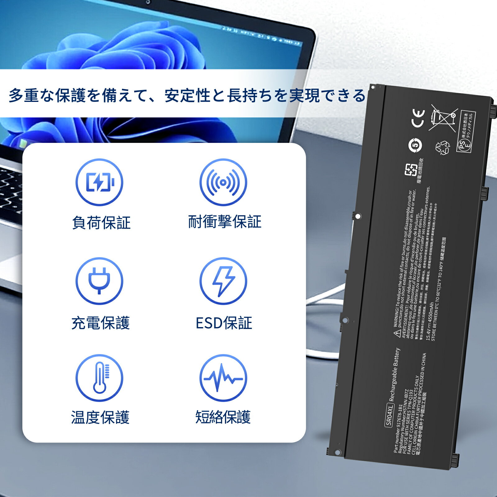 【10倍ポイント】楽天6位獲得新品 HP SR04XL 互換バッテリー【4550mAh 15.4V】対応用 1年保証 高性能 PSE認証 互換バッテリパック YHS 2025HS-XIJP