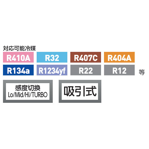 イチネンTASCO (タスコ)の一覧はこちら新冷媒・従来冷媒 対応型●対応冷媒:R410A、R32、R407c、R404A、R134a、R1234yf、R22、R12等●検出感度:3.0g/年(TURBO)、10g/年(Hi)、50g/年(Mid)、100g/年(Lo)●検出表示方法:ブザー音と9段階LEDインジケーター●ウォームアップ時間:約45秒●オートパワーオフ:10分●本体使用環境:温度0~40度、湿度80%以下●電源:100V充電式(ACアダプタにより)、USBケーブル、リチウムイオン電池●本体サイズ・質量:L198×W70×H42.5mm・365g(電池含む)・プローブ長460mm●付属品:・充電用AC/USBアダプタ・充電用USBケーブル・専用キャリーケースJANCD:4528422353734