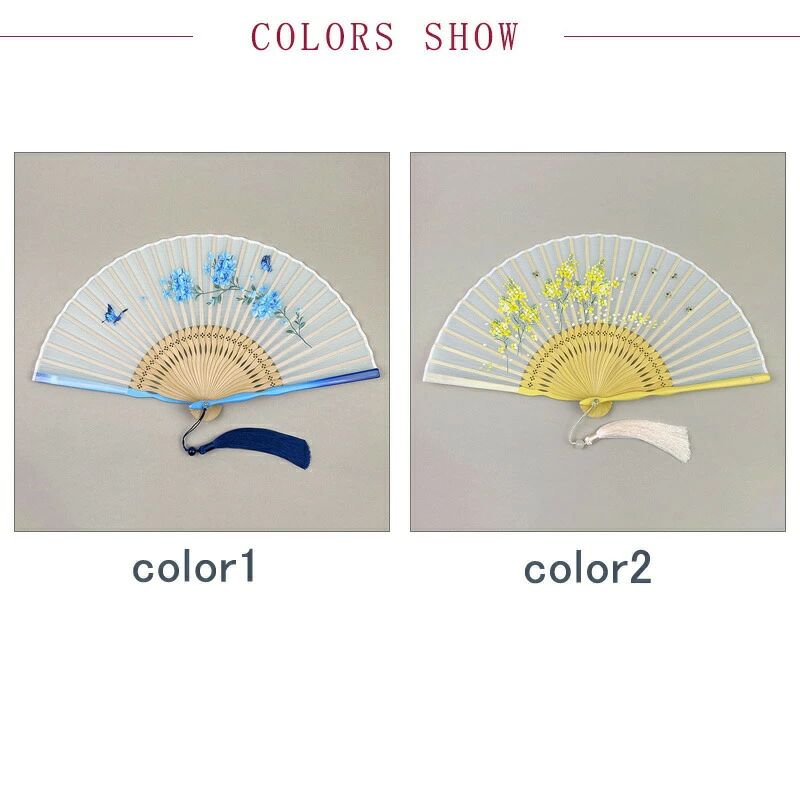 扇子 折りたたみ レディース トンボ 菜種 花柄 竹骨 絹 チャイナ風 和風 レトロ 漢服 和装 ゆかた 夏着物用 熱中症対策 花火大会 忘年会 和小物 和雑貨 ギフト お祭り 祭り かわいい プレゼント 夏
