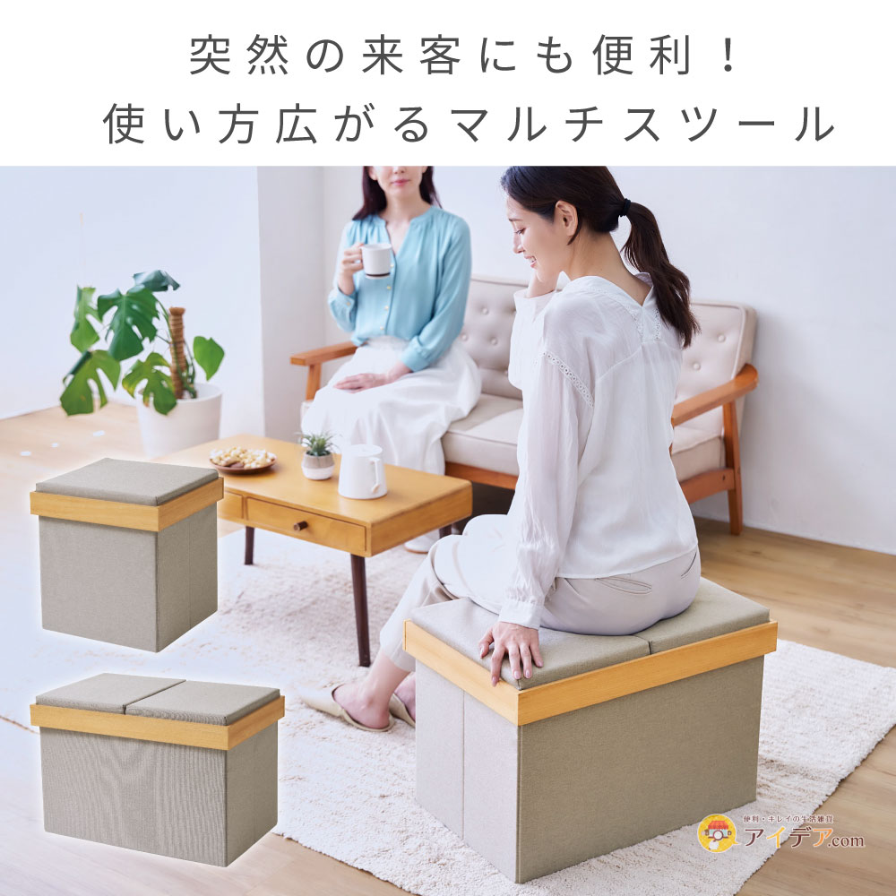 ■材質 本体:繊維板 トレイ:パーティクル ボード、MDF、紙 側地:ポリエステル ポリプロピレン クッション材:ウレタンフォーム 底板:紙、ポリプロピレン ■製品サイズ(約) シングル:38x38x40cm ワイド:60x38x40cm ■セット内容 シングル:本体、トレイ、クッション、底板 ワイド:本体、トレイ、クッションX2、中板、底板 ■使用上のご注意 ?直射日光のあたる場所や高温多湿の場所に設置しないでください。 ?熱いものや濡れたものを直接置かないでください。 ■生産国 中国 ■メーカー 株式会社コジット 種類 スツール 収納 ボックス ベンチ ベンチソファー 収納スツール 収納椅子 収納チェア いす イス 椅子 チェア チェアー オットマン 足置き 収納ボックス 収納BOX 収納ベンチ おもちゃ箱 機能性 2サイズ 背もたれなし ふた付き フタ付き おもちゃ収納 掃除道具入れ 収納付き 折りたたみ デザイン 無地 シンプル ウッディ 北欧突然の来客にも便利!使い方広がるマルチスツール サイドテーブルにもなる4wayスツール 突然の来客にも便利!サイドテーブルにもなる4wayスツール 中が収納ボックスになったスツールが、サイドテーブルや、トレイに早変わり。イス・収納・テーブル・オットマンと、4WAYでお使いいただけます。 シングルは80キロ、ワイドは100キロまでの安心の耐荷重で、機能面も優れており、急な来客時に、ソファの追加として使えて便利です。 使わない時には折りたたんでコンパクトに収納。軽くて持ち運びもラクラク。シングルとワイドの2サイズで、一緒に使えば使い方さらに広がります!