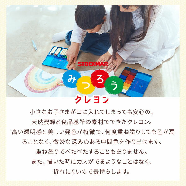 ▼ こちらもオススメ! ▼ 品名 みつろうクレヨン 8色缶 スティック or ブロック 素材・材質 みつろう、ワックス、顔料 商品内容 01洋紅色、03オレンジ、05レモンイエロー、07緑、09青、11青紫、13赤褐色、15黒 メーカー STOCKMAR【シュトックマー】/ドイツ サイズ 高さ9×幅10.5×奥行1.5cm 名入れの注意点 ・名入れ加工はご注文をいただいた時点でキャンセル・変更受付は出来かねます。 ・加工を施してしまうと、商品が販売不可の状態となりますので、キャンセル・ご返品・受取辞退などを申し出られた場合、商品代金の100%をご請求させて頂きます。なにとぞご了承ください。 ・万が一の文字入力ミスや、名入れのご確認の為にご連絡させていただく場合がございます。ご注文時はご連絡のつきやすい電話番号や、メールアドレスをお知らせください。ご連絡の取れない場合、納期が遅れる場合がございます。 ・旧漢字など特殊な漢字の場合、加工できない場合もございます。 (例: 吉 の上部分が「土」の漢字は不可) ・加工の際は、お客様にご記入頂きました文字をコピー・ペーストして加工をしております。 お選びいただいた書体によっては、文字や文字間の見え方に違いが生じる場合もございます。予めご了承ください。 ・文字の見え方によるご注文のキャンセル等はお断りさせて頂いております。 明細について 当店では、明細書など金額のわかるものはお付けしておりません。 確認事項 ※商品の色味はなるべく実際の商品に近い色味でお伝えすべく撮影及び画像処理には気を配っておりますが、ページをご覧頂くモニターなどの環境により色味・風合いは多少異なる場合がございます。予めおご了承ください。商品に関するご質問、ご不明な点がございましたら、ご注文前にお問い合わせください。 【ご案内】メール便配送をご選択いただいた場合でも、ご注文の数量や内容により宅配便に変更させて頂く場合がございます。予めご了承ください。