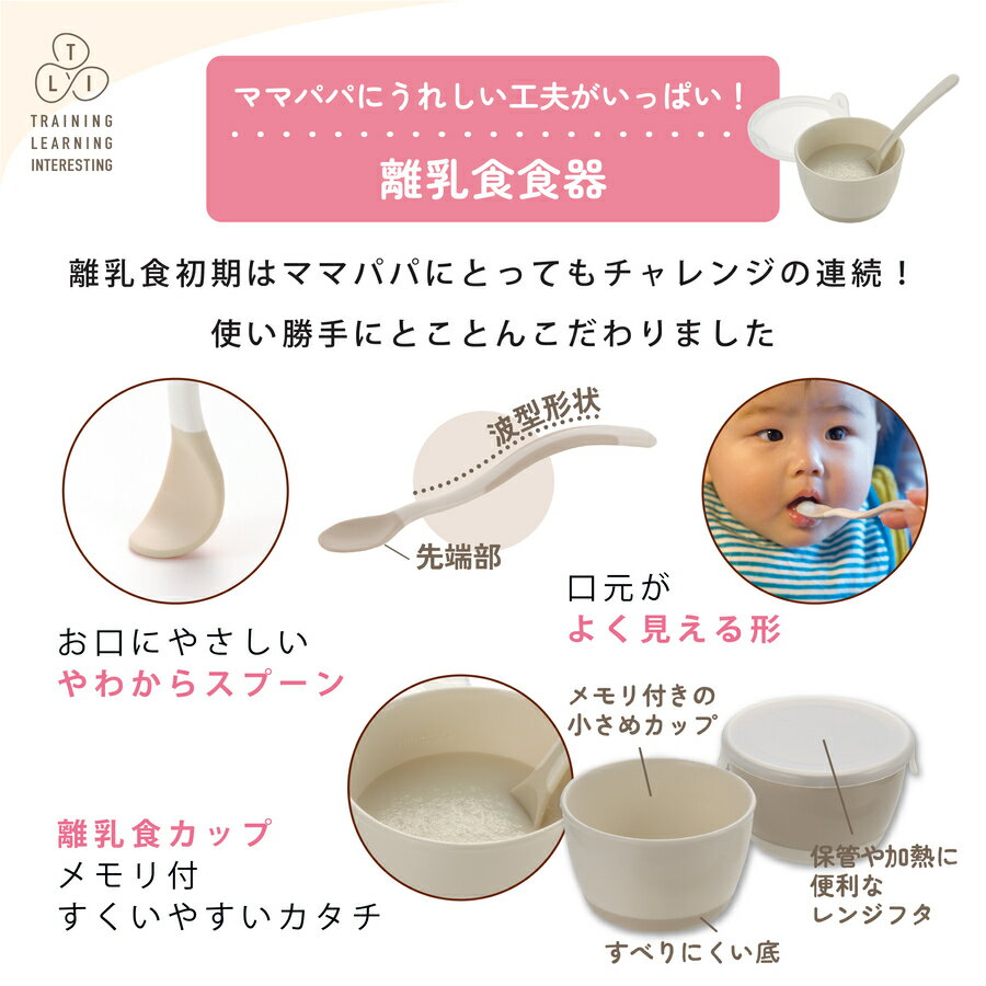 ステップアップ保冷ストローマグ ステップアップマグセット ステップアップマグセットプレミアム ステップアップできたね!お食事セット 品名 トライ 食器セット 生産国 ベトナム 材質 【離乳食小分けカップ(100ml)】 カップ:ポリプロピレン、熱可塑性エラストマー フタ:ポリプロピレン 【すくいやすいボウルS(290ml)】 ポリプロピレン、熱可塑性エラストマー 【すくいやすいプレートS(480ml)】 ポリプロピレン、熱可塑性エラストマー 【すくいやすいプレートM(750ml)】 ポリプロピレン、熱可塑性エラストマー 【やわらか離乳食スプーン】 ポリプロピレン、熱可塑性エラストマー 【にぎり持ちスプーン・フォーク(ケース付) 】 スプーン、フォーク 本体:ポリプロピレン 先端部、握り部:熱可塑性エラストマー ケース:ポリプロピレン 【ひっくり返しにくい吸盤】 シリコーンゴム 【離乳食はさみ(ケース付)】 本体:ASB樹脂 ケース:ポリプロピレン 使用上の注意 ●用途以外での使用は避けてください。 ●ご使用前に「お手入れ方法」にしたがって必ず洗浄してください。 ●火のそばや食器乾燥機、食器洗い乾燥機の熱風吹出口付近には本品を置かないでください。 ●必ず保護者の目の届くところで使用していください。 ●お子様の手の届かないところに保管してください。 ●本品にひび割れや亀裂、欠けなどが生じたり著しく変形した場合は、すぐに使用を中止してください。 ●使用後は、早めに洗浄してください。食品によっては、本品に色がつくことがあります。ただし色がついた場合でも衛生上は問題ありません。 ●テーブルの表面が濡れている場合はよくふき取ってください。濡れていると脚部が滑り、正常にボウル、プレートを固定できません ●握り部の柔らかい部分に食用油がしみこみ、べたつきが発生する恐れがありますが、衛生上は問題ありません。 ●熱い食品にフタをするときは必ず冷ましてください。 ●離乳食はさみ(キッチンバサミ)として使用しないでください。調理した食材によっては切りにくい場合がございます。 ●表面がザラザラしているテーブルなど、材質により吸盤で固定できない場合があります。その場合はトレーなどの使用をおすすめします。 ●食器をテーブルに固定したら無理に動かさないでください。 ●電子レンジご使用の際は、対応表や使用上の注意、電子レンジ取扱説明書にしたがって使用してください。 ●空だきや乾燥をするち、本品が溶けたりすることがありますので避けてください。 ●水分の少ない食品や食品の量が少ない場合は加熱時間を短くしてください。 ●オーブンやグリル、トースター機能での使用はできません。 電子レンジの種類によっては、自動的にオーブンなどに切り替わるものがありますので注意してください。 ●加熱後本品は、高温になっています。上記などでヤケドしないよう注意してください。 その他付属の取扱い説明書をよくお読みになりご利用ください。 名入れ加工商品のお取り扱いの注意点 ●洗浄の際は、やわらかいスポンジと研磨剤を含まない中性洗剤を使用し、名入れ加工部分は特にやさしく洗ってください。 ●金属タワシや固いスポンジ、メラミンスポンジ使用不可。 ●食器洗浄機・食器乾燥機や50℃以上のお湯は使用不可。 ●漂白剤は名入れ加工部分に付着させないでください。 名入れ加工について ●名入れ加工はご注文をいただいた時点でキャンセル・変更受付は出来かねます。 ●加工を施してしまうと、商品が販売不可の状態となりますので、キャンセル・ご返品・受取辞退などを申し出られた場合、商品代金の100%をご請求させて頂きます。なにとぞご了承ください。 ●万が一の文字入力ミスや、名入れのご確認の為にご連絡させていただく場合がございます。ご注文時はご連絡のつきやすい電話番号や、メールアドレスをお知らせください。ご連絡の取れない場合、納期が遅れる場合がございます。 ●旧漢字など特殊な漢字の場合、加工できない場合もございます。 (例: 吉 の上部分が「土」の漢字は不可) ●加工の際は、お客様にご記入頂きました文字をコピー・ペーストして加工をしております。 お選びいただいた書体によっては、文字や文字間の見え方に違いが生じる場合もございます。予めご了承ください。 ●文字の見え方によるご注文のキャンセル等はお断りさせて頂いております 【重要】名入れ加工済商品についての初期不良等ご連絡先 メーカー様によりましては、加工済商品につきましてご対応不可案内になる場合がございますため、当店へご連絡をお願い申し上げます。 確認事項 ※商品の色味はなるべく実際の商品に近い色味でお伝えすべく撮影及び画像処理には気を配っておりますが、ページをご覧頂くモニターなどの環境により色味・風合いは多少異なる場合がございます。予めおご了承ください。 商品に関するご質問、ご不明な点がございましたら、ご注文前にお問い合わせください。 ※画像にサイ