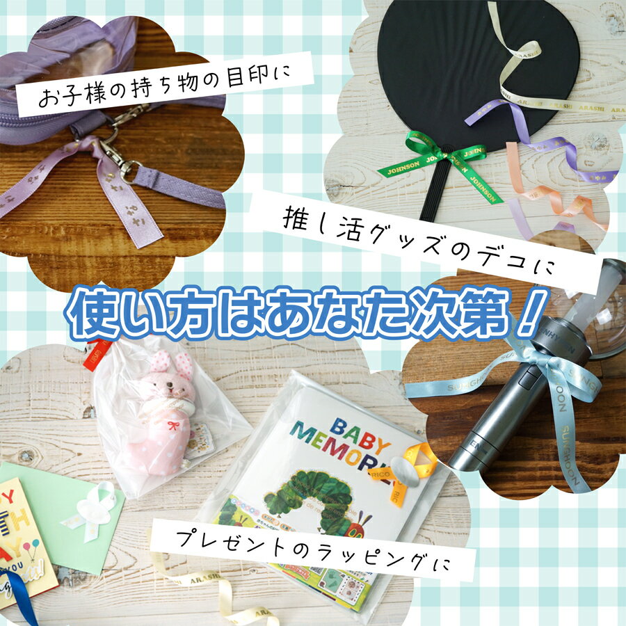 ▼ こちらの商品もオススメ ▼ 品名 お名前プリントリボン 材質 ポリエステル 製造国 中国 サイズ 幅:約15mm長さ:約500mm 名入れ加工について ●全面プリントのため、多少のずれやカスレが発生する場合がございます。●名入れ内容の長さとリボンの長さの兼ね合いにより、名入れ内容の途中でリボンをカットする場合がございます。 ●商標登録されているグループ名は名入れ出来かねます。使用された場合、お客様の自己責任となりますのでご了承くださいませ。 確認事項 ※複数カラーをご一緒にご注文いただいた場合は、1袋にまとめてお入れしております。個包装にはご対応できかねます。 ※商品の色味はなるべく実際の商品に近い色味でお伝えすべく撮影及び画像処理には気を配っておりますが、ページをご覧頂くモニターなどの環境により色味・風合いは多少異なる場合がございます。予めご了承ください。 商品に関するご質問、ご不明な点がございましたら、ご注文前にお問い合わせください。 ※画像にサイズ表記のある場合は当店スタッフが計測したサイズとなり、品質表示と異なる場合がございます。あらかじめご了承ください。