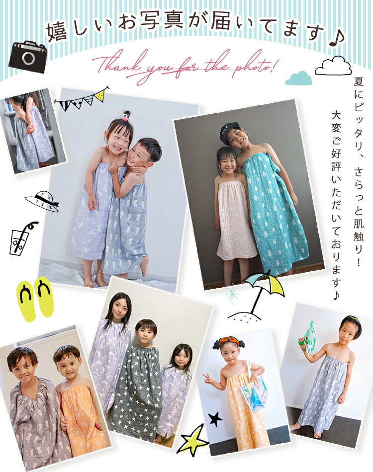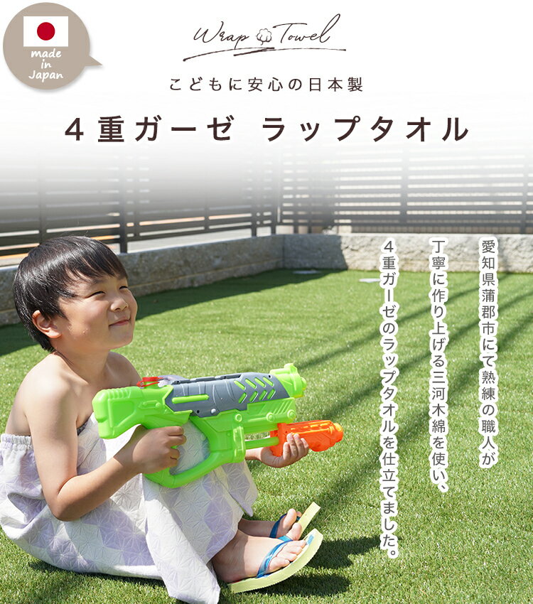 【 4重ガーゼ ラップタオル 】プールタオル 巻きタオル スカートタオル プールタオル 60cm 80cm キッズ 子供用 男の子 女の子 日本製 三河木綿 国産 コットンガーゼ 速乾 まきまきタオル 水泳 プール スイミング プール用品 着替え 水遊び