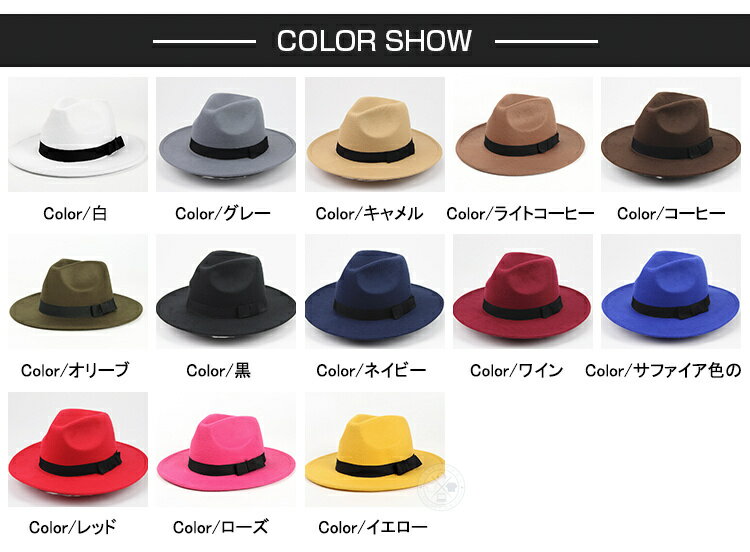 商品情報 商品名 中折れハット 中折帽子 メンズ レディース 帽子 中折れ帽 ハット フェルトハット おしゃれ フェルト帽 つば広帽 ぼうし 中折れ 舞台 撮影 演出 ダンス 素材 ポリエステル カラー 白 グレー キャメル ライトコーヒー コーヒー オリーブ 黒 ネイビー ワイン サファイア色の レッド ローズ イエローサイズ 56-59cm 生産国 CHINA 包装について 環境保護の観点から、「簡易包装」を推進しております 明細書について 当店ではエコロジーと個人情報流出防止のため、ご指示の無い限り明細書を発行しておりません。 明細書を発行ご希望の場合は個別に承らせていただきます。 お手数おかけいたしますが、ご注文時に備考欄に明細書発行希望の旨、ご入力ください。 配送について 当店は複数の保管倉庫を契約しており、複数商品をご注文の場合、商品保管倉庫により、それぞれ出荷する場合があります。 時間指定は下記よりお選びいただけます。 午前中、14-16時、16-18時、18-20時、19-21時 在庫に関するお知らせ 当社では複数店舗を運営し他店舗でも販売しております為、万一、商品の品切れ等によりお届けできない場合、 またはお届けが遅れる場合がございます。 その際には当方よりメールにてご連絡を差し上げま すが、あらかじめご了承下さいますようお願い致します。 注意 ※日本サイズ表示ではなく、ご購入前にぜひともサイズ表をご確認ください。 ※機械による生産過程により、生地を織る際の糸の継ぎ目や多少のほつれなどが生じている場合がございます。 ※サイズは平置き、メジャー採寸を行っております。 実寸は商品によって若干の誤差が生じる場合がございます。予めご了承ください。 ※お客様のご覧になられますパソコン機器及びモニタなどの違い、また室内、室外での撮影により実際の商品素材の色と相違する場合もありますのでご了承下さい。 ※※ベルト、飾りやインナーなどは含みません。