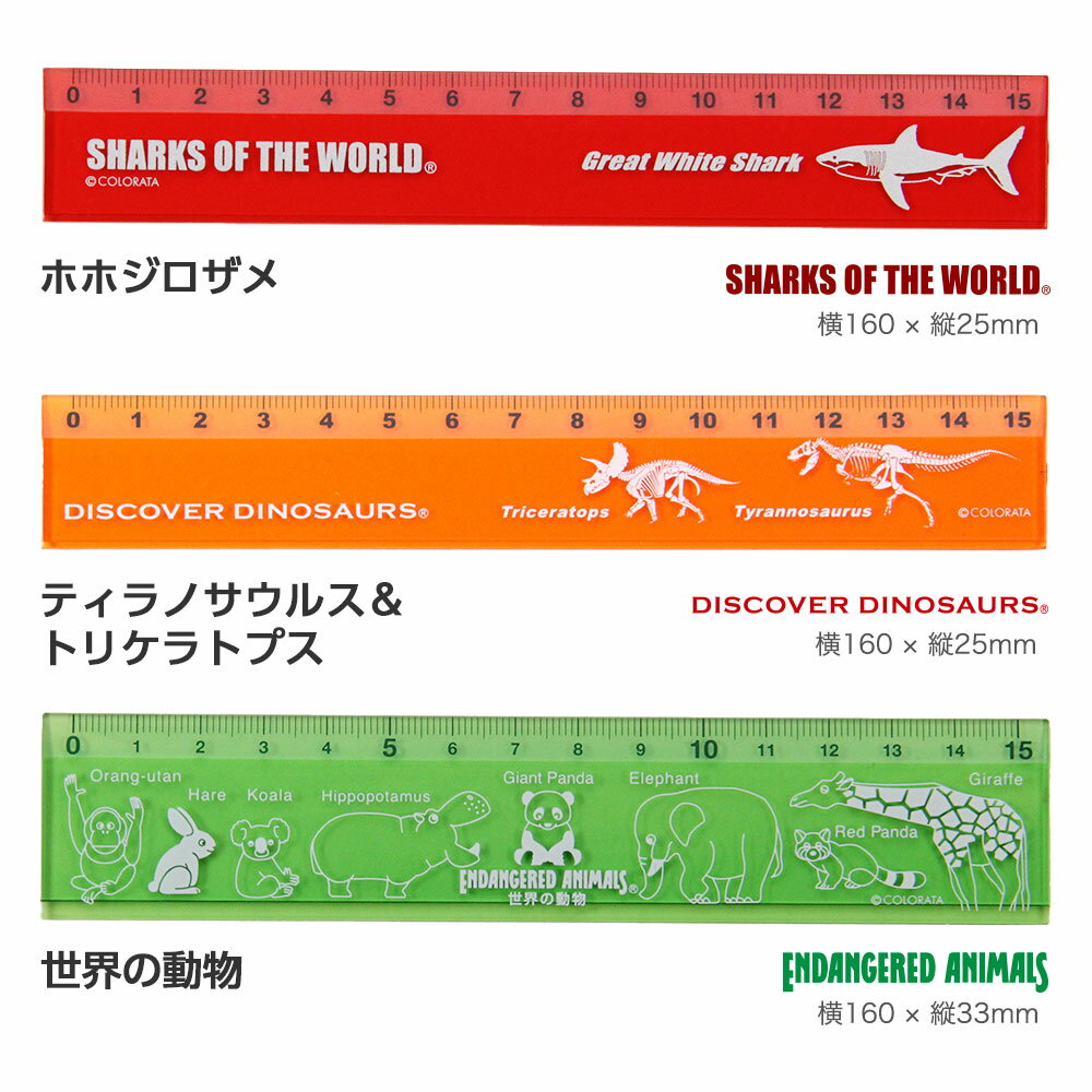15cm 定規 全10種 | ものさし スケール 軽量 プラスチック ステーショナリー 文房具 ホホジロザメ サメ ティラノサウルス トリケラトプス 恐竜 ペンギン 深海魚 ライオン トラ ネコ科 海の哺乳類 イルカ 生物 動物 携帯 子ども 子供 キッズ 小学生 勉強 学校 入学準備