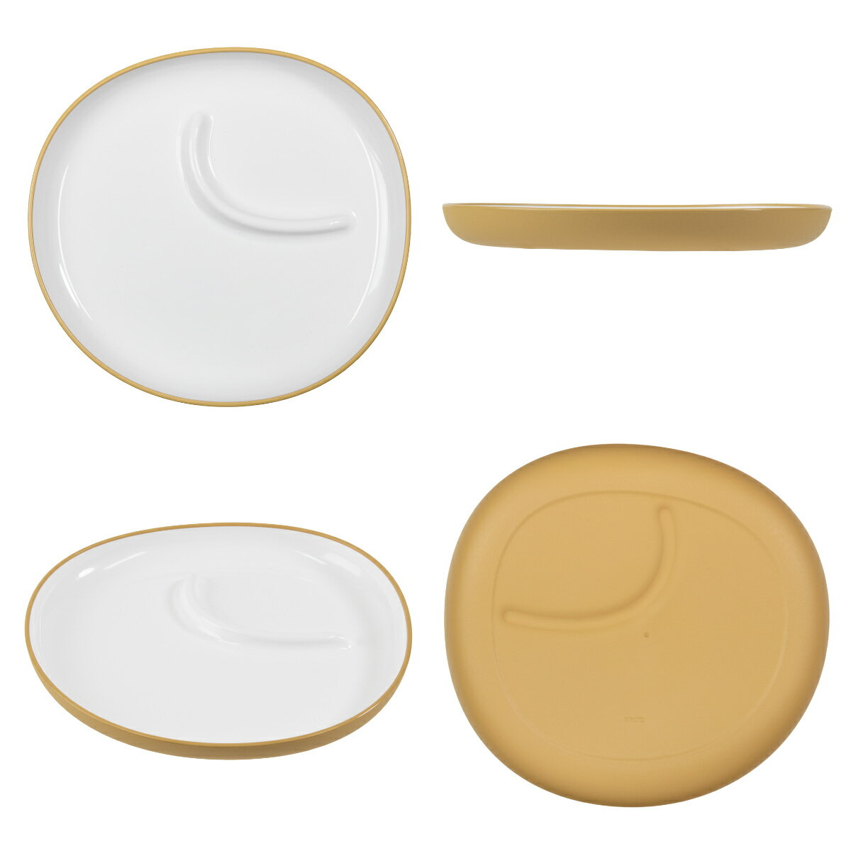 サイズ約 幅24×奥行22×高さ2.6(cm)内容量1枚材質ポリプロピレン種類ブルーグレー、イエロー、オレンジ、アイボリー生産国中国製耐熱温度140度食器洗い乾燥機使用可能電子レンジ使用可能備考BPAフリー※電子レンジで加熱しすぎたり、空焚きにならないようご注意ください。区分返品・キャンセル区分(小型商品)ギフトラッピングページを見るKINTO キントー BONBO プレート 240x220mmおすすめポイント手づかみ食べのスタートに プレート24cmごはんやおやつをワンプレートに盛り付けられる仕切り付きのプレートで、手づかみ食べのスタート時期(9ヶ月頃)のお子様にぴったりです。シンプルでありながら、柔らかな輪郭がおしゃれなデザインです。料理が映えるホワイトとくすみカラーの組み合わせが食卓に優しく馴染みます。仕切り付きで使いやすい便利な仕切り付きで、ごはんやおかずと分けてデザートの盛り付けが簡単にできます。また、仕切り部分には同シリーズのボウルやスープマグがぴったりとフィットするので、一緒に使っていただくとスープや汁気のあるおかずもワンプレートにできます。食べ物をすくいやすいプレートの内側はスプーンで食べ物をすくいやすい形状です。お子様の「自分で食べたい!」という気持ちに寄り添うデザインです。楽しい記憶として残るテーブルウェア「BONBO」シリーズ丸みを帯びた柔らかなフォルムと、落ち着いたデザインが可愛い「BONBO(ボンボ)」シリーズ。毎日のごはんやおやつの時間が楽しい記憶として残るような、ベビーとキッズのためのテーブルウェアです。離乳食のはじめから、幼児期まで使えるサイズとフォルムで長くご愛用いただけます。商品詳細軽くて割れにくく使いやすい内面はつるつるとした質感で、汚れが落ちやすく水きりもスピーディーです。外側はざらざらとしたマットな質感で手に馴染みやすく、滑らず上手に持つことができます。軽くて丈夫なプラスチック製なので、万が一お子さまが落としたり投げてしまっても割れにくいので安心です。安心・安全なBPAフリー人体への悪影響を及ぼす懸念があるBPAが含まれていません。赤ちゃんの哺乳瓶にも使用されるほど、高い安全性を保った素材を使用しています。食洗機・電子レンジ対応食洗機・電子レンジに対応しているので、お料理の温め直しや毎日の後片付けも簡単です。贈り物におすすめ複数枚揃えても重なりが良く、場所を取らずにスッキリと収納できます。お洒落な専用ボックス入りで、出産祝いや誕生日のプレゼントにも最適です。カラー商品画像ブランド紹介たとえば季節のうつろいから、自然の美しさに気づくこと。親しい人とあたたかな料理を味わい、くつろぎのなかで癒やされること。自分の手にしっくりと馴染むものを見つける喜びに目覚めること。誰かのこころが潤いに満たされる、その豊かな情景を思い描きながら私たちは手を動かし、思いをこめて、ものづくりに携わっています。ご注意点※食洗機でのご使用に際しては製品に力が加わるような格納は避けて機器の上部に置いてください。※洗浄の際はクレンザーやたわしを使用しないでください。※商品の色味は、お客様のお使いのモニター設定、お部屋の照明等により実際と異なる場合がございます。※上記理由による、返品・交換はお受けできません。ご了承の上お買い求め下さいますようお願い致します。シリーズ紹介スナックボウルランチボウルスープマグボウル11cmプレート17cmプレート24cmスプーン&フォークストローカップ 200mlストローマグ 260ml4点セット6点セット関連キーワード:子供食器 容器 メイン皿 ワンプレートメニュー プラスチック 器 うつわ 小さめ 小食 こども ベビー 用 離乳食 キッズ食器 大人も使える 可愛い オシャレ かわいい お洒落 シンプル 無地 おすすめ 人気 便利 日常使い オススメ 日常 プレゼント 贈り物 ギフト お祝い 出産祝い 食洗機 電子レンジ 対応 OK 使える 可能 チンできる レンチン ボンボシリーズ ボンボ LH3764 26377 26378 26379 26396