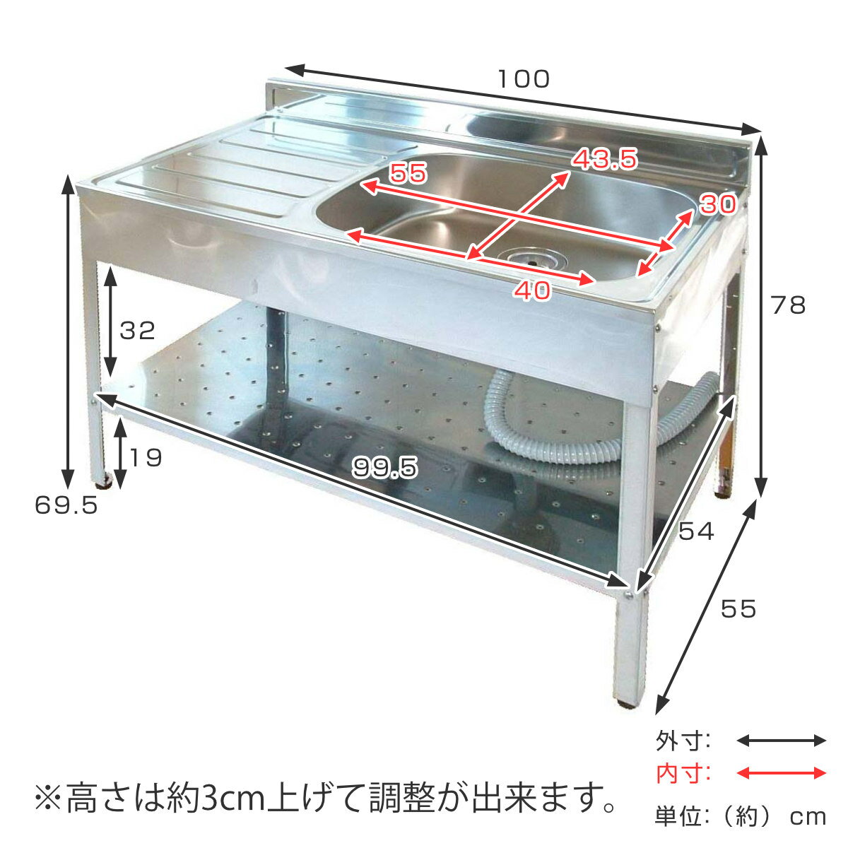 流し台 ステンレス 簡易流し台 幅100×奥行55×高さ78cm ガーデンシンク 屋外 ( シンク アウトドアシンク アウトドア ステンレス製 アウトドアキッチン 家庭菜園 ガーデニング 洗い場 排水ホース付き 簡易キッチン )【3980円以上送料無料】