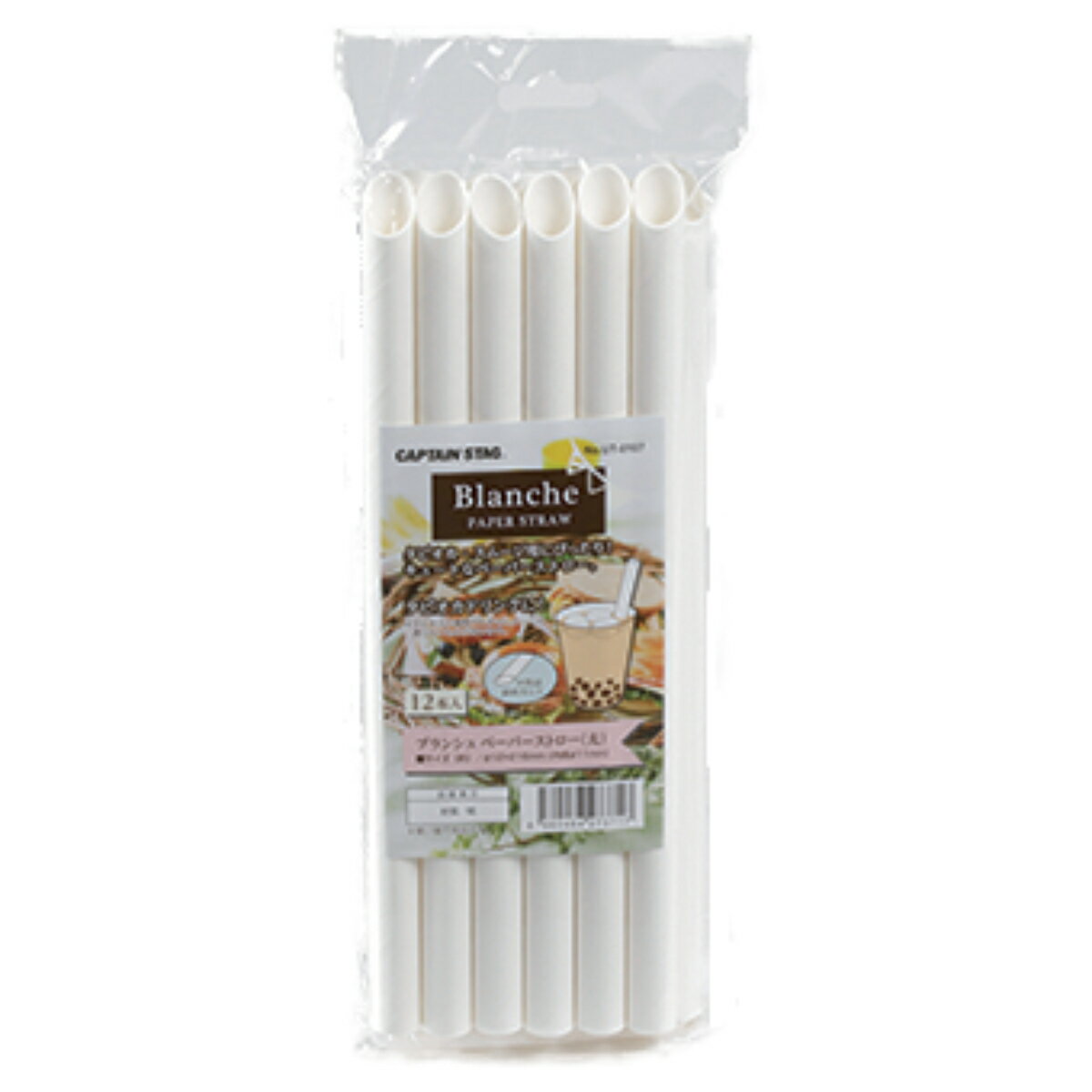 紙ストロー 直径1.2×21.6cm 太タイプ 12本入 ペーパーストロー ブランシュ キャプテンスタッグ ( CAPTAIN STAG ストロー 12本 紙製 使い捨て 紙 タピオカ 使い捨てストロー ペーパー ジュース スムージー シェイク 太目 ) 【3980円以上送料無料】