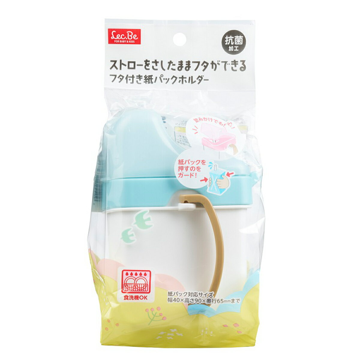 紙パックホルダー フタ付き紙パックホルダー 125ml対応 ( ドリンクホルダー ふた付き 食洗機対応 ジュースホルダー 両手 ハンドル付き 抗菌 シンプル ベビー キッズ マグ 持ちやすい こぼれない 飲み残し 一時保存 便利 持ち手付き )【3980円以上送料無料】