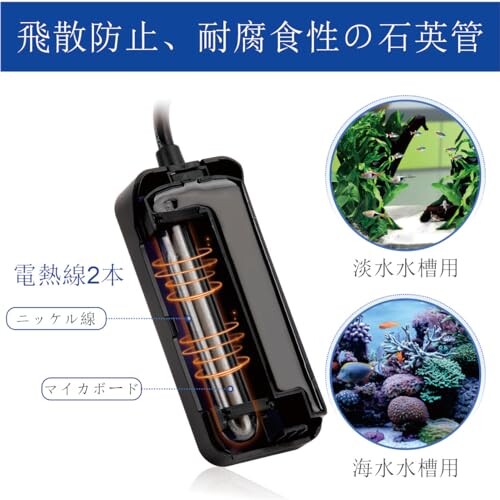 hygger 水槽ヒーター 100W 小型水中ヒーター ミニヒーター ヒーター 15-34[度]温度調節可能 サーモスタット付き 操作簡単 メモリー機能 38〜75Lの海水・淡水水槽に適応 ベタ 熱帯魚・観賞魚対応 【防爆で安全】hygger水槽ヒーターは、2つの発熱部をマイカプレートとニッケル線で二重に包んだ防爆クォーツチューブを採用し、さらに耐衝撃性の高いプラスチックハウジングで保護。適切な温度を安定して維持しながら、ペットの安全を万全に守ります。 【温度表示】水槽ヒーターは15[度]から34[度]までの温度表示が可能で、リアルタイムの水温を正確に表示します。インジケーターは加熱中は赤色に点灯し、設定温度に達すると緑色に変化するため、温度管理がひと目で確認できます。 【空焚き防止】ミニヒーターですが、スマート温度安全制御装置を搭載し、ヒーターが空気に触れると自動的に遮断、LEDディスプレイで「Er」と現在の温度が表示されます。温度が 36[度]に到達もしくは超えると、LEDは「EE」が表示され、ヒーターは自動的に遮断されます。 【操作簡単・メモリー】小型水槽ヒーターは外付けの温度コントローラーで簡?に使用可能:1回押すと希望の温度を設定し、設定記録を確認します。点?時に温度設定をします。設定完了後、表示値は点滅から点灯に変わります。「SET」ポタンを一回押すと?定記録が確認できます。搭載したメモリー機能は、電源を入れ直したときにも設定を保持することができます。 【38〜75L海水/淡水水槽用】100W水槽ヒーターは、11×4.8×2.4cmのコンパクトサイズで、場所を取らずに静かに動作します。2つの強力な吸盤が付いており、フィルター、木、岩の後ろなどに簡単に隠して設置可能です。フラットなデザインのため、砂利のない水槽の底に垂直または水平に設置でき、低水位のカメの水槽を効果的に温めることができます。 商品コード65072294115商品名hygger 水槽ヒーター 100W 小型水中ヒーター ミニヒーター ヒーター 15-34[度]温度調節可能 サーモスタット付き 操作簡単 メモリー機能 38〜75Lの海水・淡水水槽に適応 ベタ 熱帯魚・観賞魚対応型番hg-045サイズL:100W-narrow※他モールでも併売しているため、タイミングによって在庫切れの可能性がございます。その際は、別途ご連絡させていただきます。※他モールでも併売しているため、タイミングによって在庫切れの可能性がございます。その際は、別途ご連絡させていただきます。