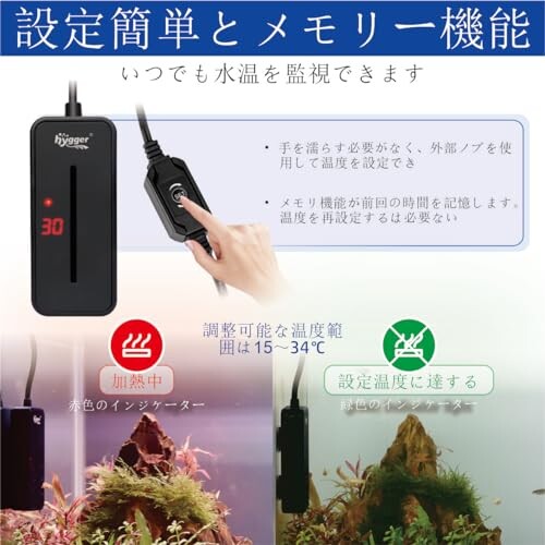 hygger 水槽ヒーター 100W 小型水中ヒーター ミニヒーター ヒーター 15-34[度]温度調節可能 サーモスタット付き 操作簡単 メモリー機能 38〜75Lの海水・淡水水槽に適応 ベタ 熱帯魚・観賞魚対
