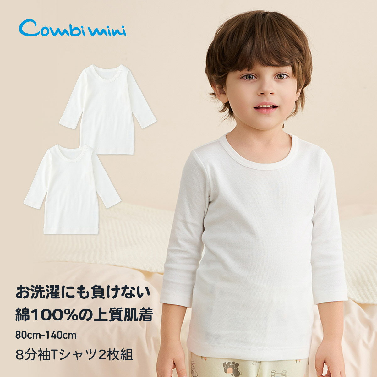 《コンビミニ》8分袖Tシャツ2枚組 : 男の子 女の子 80cm 90cm 100cm 110cm 120cm 130cm 140cm | 下着 ベビー 子供 肌着 肌着セット 7分袖 ベビー服 子供服 キッズ キッズ服 男児 女児 おしゃれ ベビー肌着 赤ちゃん肌着【インナー】