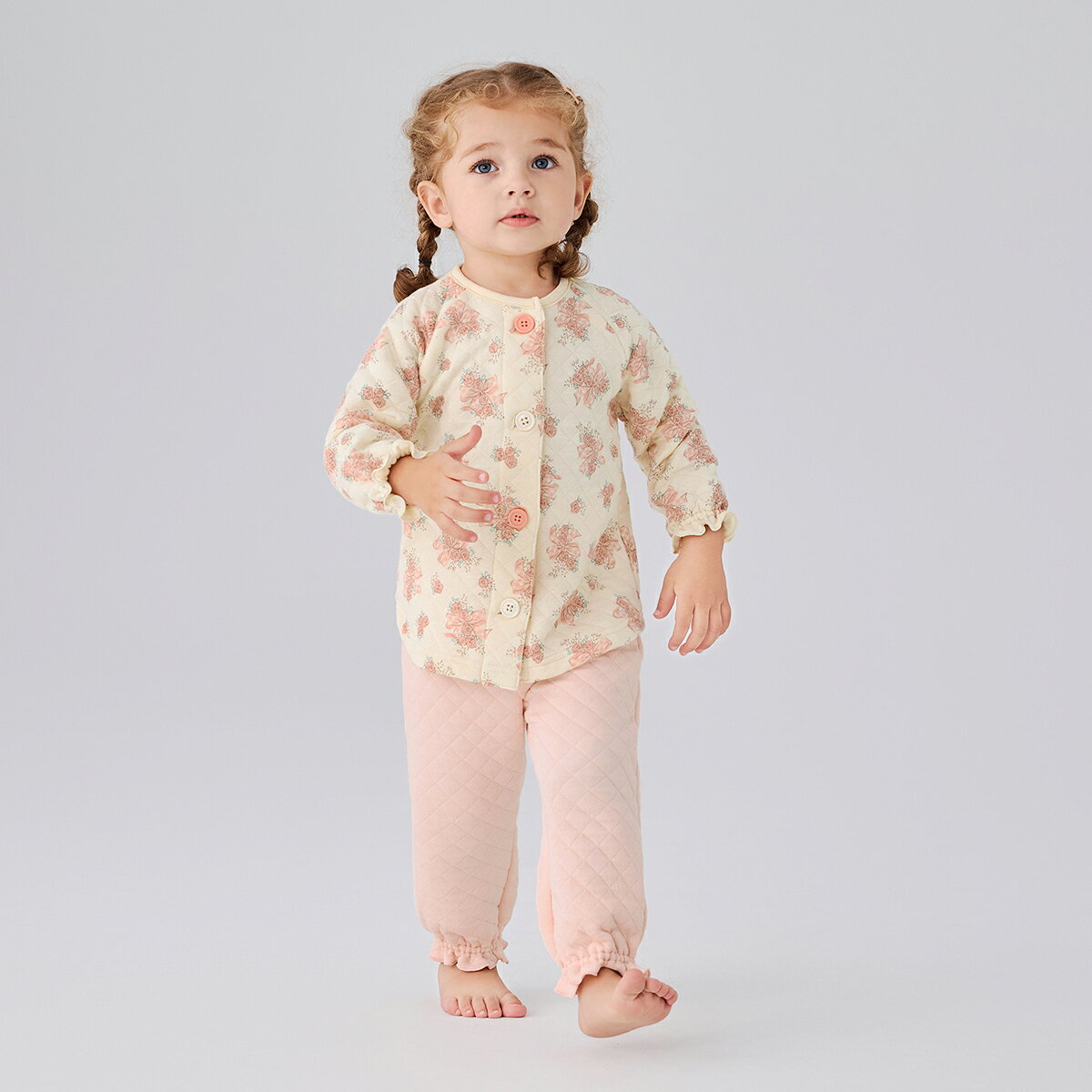 【15%OFF】《コンビミニ》のびのび腹巻付きあったかキルト長袖前開きパジャマ(花りぼん) : 女の子 80cm 90cm 100cm 110cm 120cm 130cm 140cm | ベビー服 子供 子ども こども キッズ 秋冬 ルームウェア 可愛い【パジャマ】