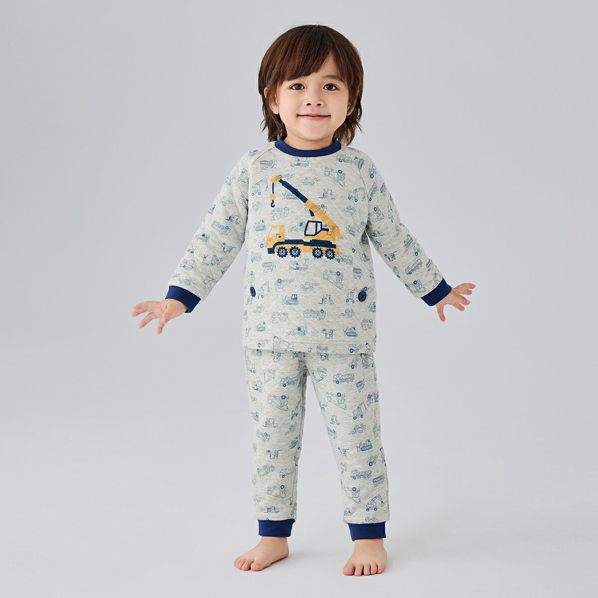 【20%OFF】《コンビミニ》おなか安心ボタン付きあったかキルト長袖パジャマ(はたらく車・汽車) : 男の子 80cm 90cm 100cm 110cm 120cm 130cm 140cm | ベビー服 子供 子ども こども キッズ 秋冬 ルームウェア 可愛い【パジャマ】