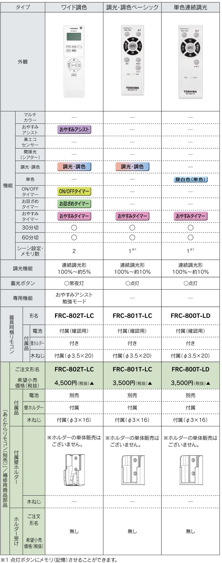 東芝ライテックLED器具リモコン送信器 調光・調色ベーシック受注生産品FRC-801T-LC【RM】