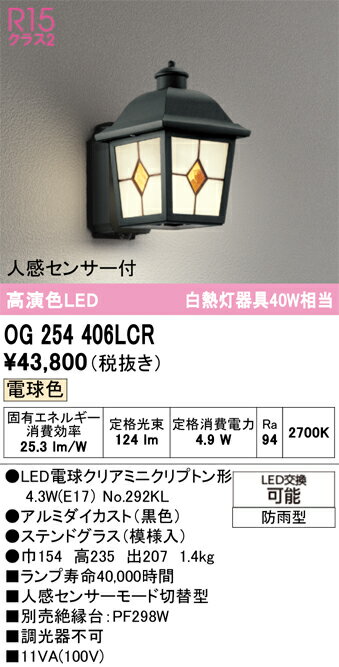 オーデリックエクステリア LEDポーチライト白熱灯40W相当 非調光人感センサー 防雨型電球色黒色:OG254406LCR鉄錆色:OG254407LCR【OD】【BR】
