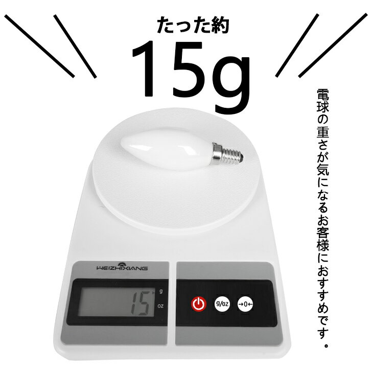 [ 製品仕様 ] 商品名:LEDシャンデリア電球(白色フロストカバー) 口金:E12/E17 サイズ:約35mm×100mm 演色性:Ra80以上 照射角度:300° 色温度:電球色2700K/自然色4000K/昼白色6000K 全光束:電球色400lm/自然色420lm/昼白色450lm 定格電圧:AC100V 消費電力:約4W 保証期間:1年保証 保証期間内の故障につきまして、商品本体に起因する故障の場合、商品代金は無料で対応させていただいております。 到着から7日以上経過した商品については、保証期間内であっても送料をご負担いただいております。予めご了承ください。 備考: ・高品質、省エネ ・定格寿命1,5000時間以上 【注意事項】 ・非常用照明器具・誘導等器具・水銀灯・ナトリウムランプ・メタルハライドランプなどのHIDランプ器具などでは絶対に使用しないでください。 ・密閉形器具や密閉に近い器具では使用しないでください。 ・紙や布などで覆ったり、燃えやすいものに近づけないでください。 ・取り付け、取り外しや清掃の際には必ず電源を切ってください。 ・直流電源では絶対に使用しないでください。 ・高温多湿の場所ではご使用にならないでください。 ・器具で指定されているワット数以下のランプをご使用ください。 ・ぶつけたり、落としたりしないでください。 ・点灯中・点灯直後は高温になる場合があるため、直接手でふれないでください。 ・取り付けの際にはソケットに確実にとりつけてください。 ・水洗いや分解・改造はしないでください。 ・人感スイッチ等の自動点滅装置・遅れ停止スイッチなどには使用できない場合があります。 ・ラジオ、テレビや赤外線リモコン方式の機器から離してご使用ください。 ・同じ型名商品でも個体差があるため、照度や色温度の違いがあります。ご了承くださいませ。 ・LED電球周囲温度が5〜40℃の範囲で使用してください。 ・ご使用の環境が省電力、調光器等により電圧が100V未満になる場合、電圧不足で点灯しない、又は点滅する場合がございます。 ・ホタルスイッチなど微弱な電流が流れる回路の場合、完全に消灯せずに薄っすら点灯する場合があります。 ・画像の光の色調はご使用のモニターの機種や設定により実際の商品と異なる場合があります。【LEDシャンデリア電球(白色フロストカバー)|工事不要で簡単設置。節電対策にはled照明が効果的です。】 口金サイズ:E12/E17 ・電球のカラーは電球色、自然色、昼白色をご用意いたしました。用途に合わせて電球のカラーをお選びください。