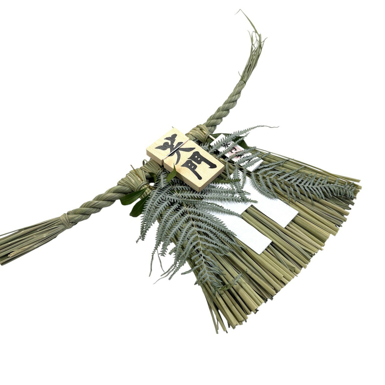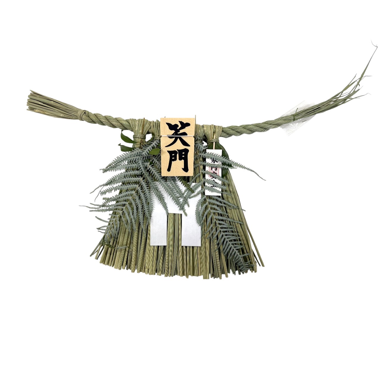 PRODUCT DETAILS 商品名 伊勢しめ縄 ミニサイズ 蘇民将来 笑門 サイズ 横::約50cm 縦:約26cm 素材 稲わら(本体)、ひのき(木札)、裏白(縁起装飾)、紙(紙垂) 商品説明 【伊勢しめ縄】 新年を迎えるにふさわしい、伊勢地方の伝統工芸「伊勢しめ縄」。 「伊勢のしめ縄」 伊勢志摩地方三重県伊勢地方では、蘇民将来(そみんしょうらい)の民話に由来する「蘇民将来子孫家門」と書かれた木札のしめ縄を、無病息災、家内安全を願う魔除けとして一年中玄関先に飾る風習があります。 飾りやすいミニサイズをご用意しました。 本品は、地元伊勢の職人が一つひとつ手作業で仕上げた伝統工芸品です。使用する素材にもできる限り地元伊勢産を使用することにこだわった逸品です。 玄関先などに飾ることで、清らかな気を招き、心新たに一年を始めることができます。 注意事項 お使いの端末やモニターの閲覧環境により、写真と実物の色味や質感が多少異なって見えることがございます。12月中旬以降に順次発送いたします。着日指定やお急ぎの配送は出来かねます。全て手作りのためサイズに若干の誤差は生じます。 商品キーワード しめ縄 正月飾り 伊勢しめ縄 笑門 蘇民将来 左太しめ縄 縁起物 魔除け 疫病除け 手作りしめ縄 伊勢志摩 伝統工芸 一年中 飾れる 玄関飾り 伊勢産 素材 厄除け 開運グッズ 神道 飾り お正月準備 和風インテリア伊勢しめ縄 ミニサイズ 蘇民将来・笑門(2種) 【数量限定|伊勢の伝統を今に伝える厄除けしめ縄】 伊勢地方の民話「蘇民将来(そみんしょうらい)」に由来する、無病息災・家内安全を願う縁起物しめ縄です。 古来より玄関に飾ることで災いを遠ざけ、福を呼び込むとされています。 本商品は、以下の2種類の木札をご用意しております: ● 笑門(しょうもん) 「笑う門には福来る」の言葉にちなみ、笑顔あふれる一年を願う縁起札です。 ● 蘇民将来(そみんしょうらい) 厄除け・魔除けの意味を持つ由緒ある札。災厄から家族を守る護符として信仰されています。 数量限定のため、なくなり次第終了となります。お早めにお求めください。 【商品サイズ】 横:約50cm(最長部) 縦:約20cm ご自宅用だけでなく、新築祝いや開店祝いにも最適な縁起物です。 日本の伝統を玄関先に飾って、一年を健やかにお過ごしください。