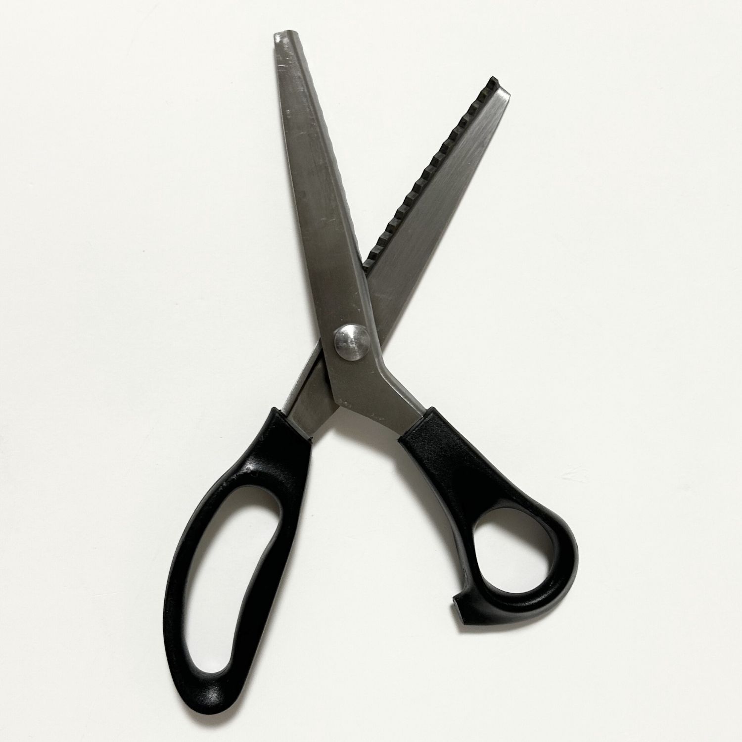 【ギザギザカット/なみなみカット】紙用、布用、色々な素材に利用できるピンキングはさみです。カットするだけで断面がギザギザ/なみなみに! 【ステンレス製・防錆】ステンレス素材で頑丈、錆が出にくい。 【幅広い用途】手芸品や民芸品、手作りアートやクラフトアートなどの工作品、コスプレ衣装などオリジナルでファッションのDIY製作にもお使いいただけます。ナイロン、革、ニット、厚紙、織物、デニム、綿、絹、不織布、プラスチックフィルムなどのカットに適しています。 【切れ味が良い】ハンドルは手の形状に合わせて握りやすく、軽量で楽に使えます。刃のどの位置でも切れ味が良く、切削は簡単です。 商品名haha ピンキングハサミ 刃の形山型 / 波型どちらも5mmピッチ 材質刃/ステンレス鋼 持ち手/プラスティック 機能・性能布や紙などを5mmピッチのギザギザ/なみなみにカットします。 切断可能な素材織物、柔らかい革、ナイロン、デニム、ニット、編、厚紙、綿、絹等 サイズ全長23.5cm * 持ち手幅8cm * 厚み1.5cm ピッチ5mm 重さややあり140g 原産国中国 (検索キーワード)※読む必要はありません ピンキングバサミ ピンキングばさみ ギザギザ鋏 ギザギザバサミ ギザギザばさみ ギザギザカット ぎざぎざカット なみなみ ナミナミ