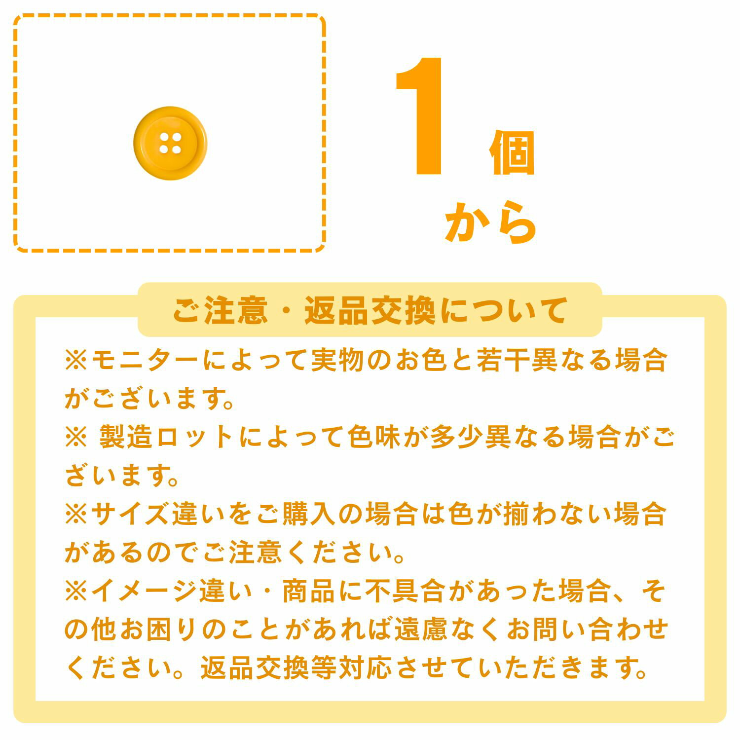 艶のある樹脂製のボタン。 樹脂製 直径15mm/18mm/20mm/23mm/25mm 1個(バラ売り)です 四つ穴でスタンダードなシンプルボタンですのでお洋服等に使いやすいボタンです。 お洗濯にも強い素材。 【用途】 ジャケット、スカート、パンツなどの各種洋服につける他、手芸やクラフトデコレーション材料として使うなどアイデア次第で色々な用途にお使いいただけます。 【商品仕様】 色:オフホワイト、ベージュ、ダークグリーン、ブラウン、ブラック、ホワイト、 グリーン、グレー、ブルー、ラベンダー、イエロー、オレンジ、レッド、ピンク、ライトブルー メイン素材: 樹脂 サイズ: ・直径25mm 厚み2.5mm ・直径23mm 厚み2.4mm ・直径20mm 厚み2.3mm ・直径18mm 厚み2.2mm ・直径15mm 厚み2.1mm 重さ: ・(25)1.3g/1個 ・(23)1.1g/1個 ・(20)0.8g/1個 ・(18)0.6g/1個 ・(15)0.5g/1個 洗濯:可 個数:1 *当店で別途ボタンつけサービスも行っております。 ボタン式サスペンダーのボタンつけをご希望の方はお問い合わせください。 (検索キーワード) ぼたん botan 釦 赤 あか 青 紫 アースカラー 黄 薄ピンク 桃色 深緑 灰色 グレー 薄灰 ★関連商品★ 同種セット売り(6個) ★同じカテゴリの商品★ 木目調樹脂ボタン18mm 6個セット 木製ボタン15mm 18mm 20mm 6個セット 金属ボタン6個セット
