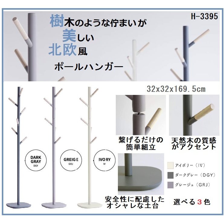 ポールハンガー 木製 北欧 ハンガー おしゃれ Pole Hanger cime シーム ハンガーラック コートハンガー 片付け 玄関収納 H-3395GRJ H-3395IV H-3395DGY 市場