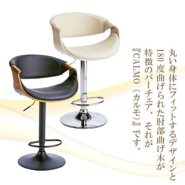 全体的に曲線を描いた丸みがあり、身体にフィット♪リラックスできるデザインです。 背もたれと座面部分にはクッション性のあるウレタンが入っているので座り心地もよく、長時間でも快適にお座りいただけます。 ●商品詳細 商品名: バーチェア CALMO(カルモ) サイズ: 幅53×奥行き51.5×高さ88〜109cm(座面高:62.5〜83.5cm) 材質: 張地:合成皮革(PU)、天然木突板貼り合板(ラッカー塗装)、ウレタン、スチール(ナチュラル:クロームメッキ、ブラウン:粉体塗装) 備考:組立式(約10分)、360度回転、座面高さ調整可能 ●選べる2カラー カラーはナチュラル、ブラウンの2カラーをご用意。 張地と木材のカラーがそれぞれ異なります。 ※送料は基本[無料]になります。 沖縄県・北海道・一部地域・離島等の条件によりましては別途追加送料が必要となります。 お見積りを致しますのでご連絡下さい。 関連キーワード(本商品の説明ではございません。) ガス圧 ヴィンテージ レトロ カジュアル イス 椅子 いす 高さ調節 キッチンカウンターチェア すつーる 回転チェアー レトロモダンデザイン 人気 検索ワード 人気 おすすめ おしゃれ ランキング インスタ映え インスタ インスタグラム Instagram