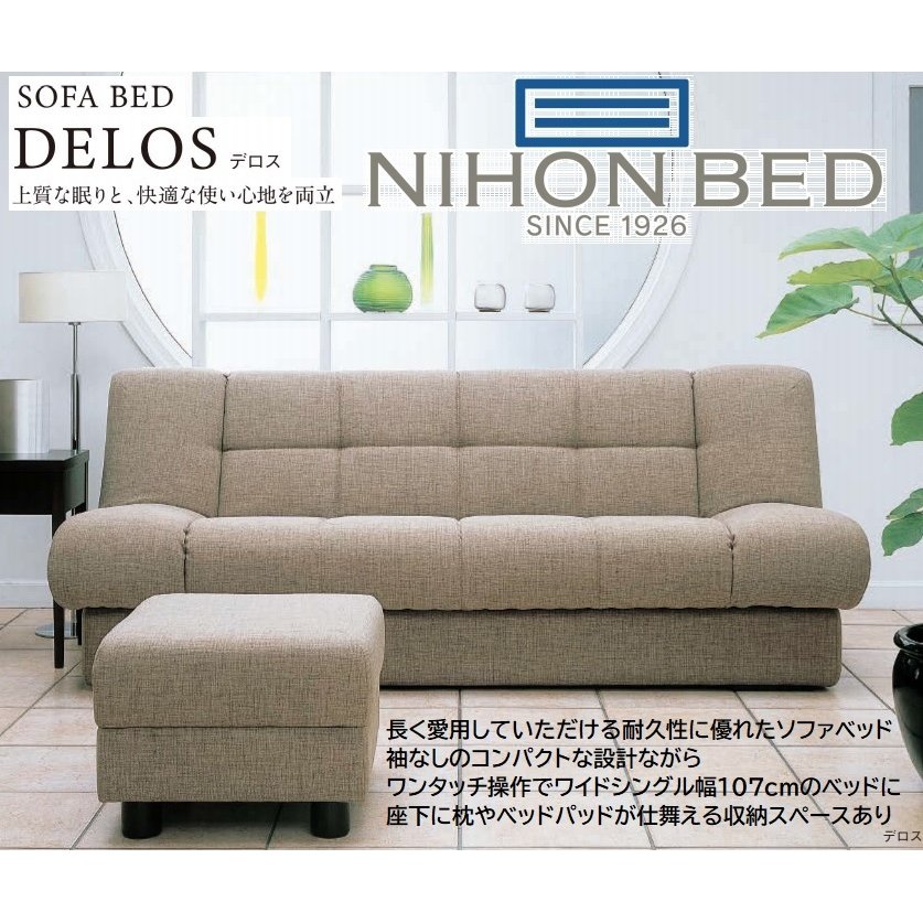 開梱設置・口コミプレゼント付き! ソファーベッド DELOS デロス 日本ベッド 正規品 収納スペース ワンタッチ ワイドシングル ソファ 日本製 布 ファブリック 収納付 コイルスプリング 日本ベッド製造 ソファベッド