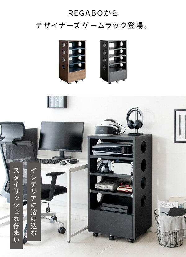 ゲーム ゲーム機 ゲームラック 収納棚 PS5 REGABO レガボ GRK-002 充電スタンド コンパク ルーター収納 ラック PS4 PS4Pro 棚 Switch リビング収納 シンプル ゲーミング 薄型 おしゃれ 木製 デスク収納 隙間 PC PC収納 PC周辺