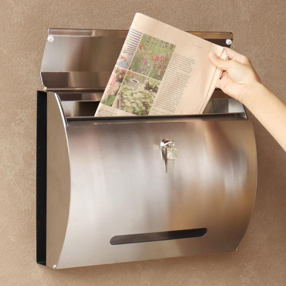 壁付けポスト 壁掛けポスト ポスト 郵便ポスト 郵便受け メールボックス 宅配ボックス WM-043 ステンレス 防錆 A4 壁掛け 壁付け おしゃれ レトロ シンプル 鍵 窓 R加工 シンプル 銀 シルバー メタリック MOJYU モジュ Mauro マウロ