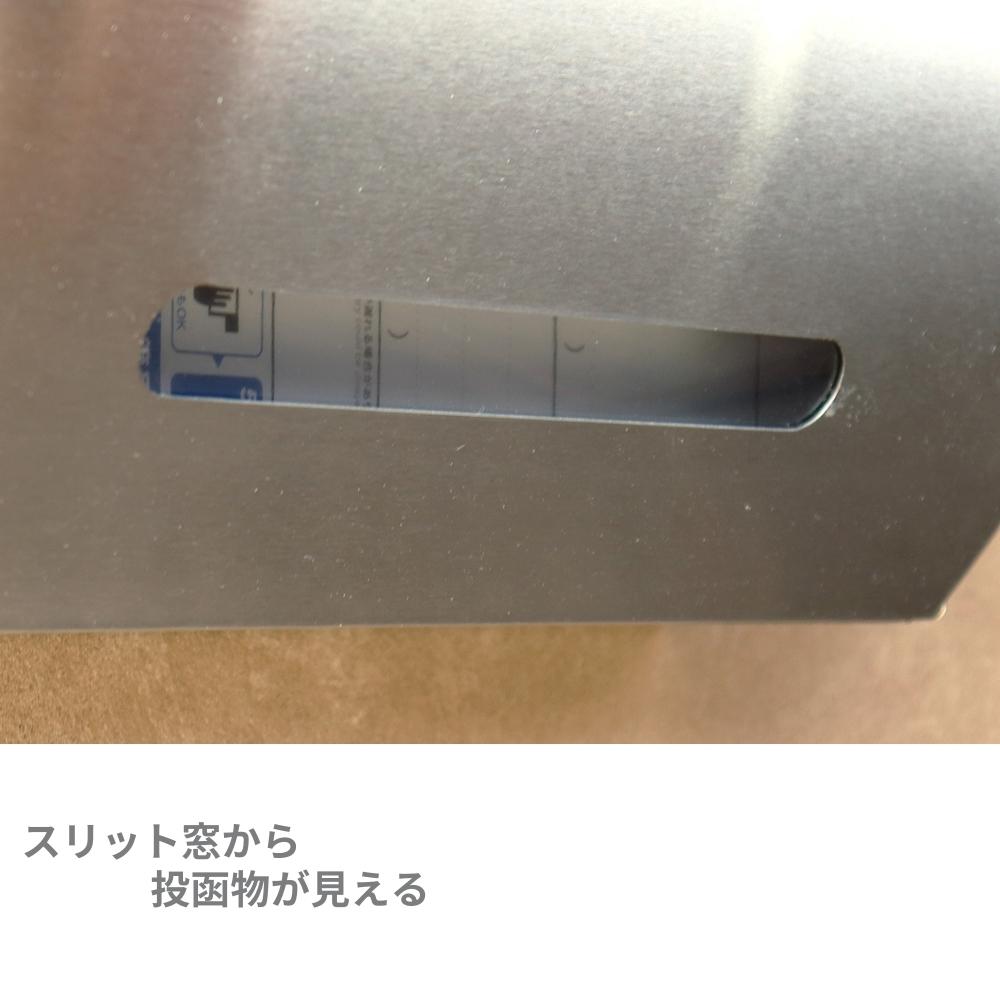 ・大きな郵便物も投函可能:茶封筒角形2号やレターパックライトが投函可能です。 ・セキュリティ:鍵付きなので防犯面も安心です。また、スペアキーが1本付属しています。 ・ステンレスはヘアライン仕上げで、落ち着いた高級感のある仕上がりとなっております。 ・スリット窓付:前扉の下部にスリット窓がついているため、鍵をあけなくても郵便物が投函されているのか確認が可能です。 ・郵便取出し扉は180°近く開き、郵便物の取出しを楽々行えます。 ・錆びが発生しにくい素材:SUS430ステンレスを使用し、錆が発生しにくい商品となります。 ・壁面に取付用のアンカー(コンクリート、モルタル用)、取付ネジ付属しております。 ※防水塗装は施しておりませんので、軒下や屋根がある場所への設置を推奨致します。 サイズ:W38.0×D13.0×H31.0cm 投函口 約W36.6×H3.0cm 取出口 約W36.3×H23.0cm 重量:2.3kg 材質:ステンレス(SUS430) 加工:ヘアライン仕上げ 備考:完成品 ※基本送料無料(沖縄県・北海道・一部地域・離島等の条件によりましては別途送料が必要となります。) 検索ワード シンプルレトロ レトロモダン シンプルモダン リメイク リフォーム リノベーション 壁付 壁つけ 壁づけ 壁掛け 壁がけ 壁かけ 壁掛 壁取付 壁取り付け 壁取り付 壁取付け 壁設置 カベ付 カベ付け カベつけ カベづけ カベ掛け カベかけ カベ取付 カベ取り付け カベ設置 鍵 鍵付き 鍵付 鍵あり 鍵有 鍵有り カギ カギ付 カギ付き カギあり カギ有 カギ有り かぎ かぎつき かぎ付 かぎ付き かぎあり かぎ有 かぎ有り スペアキー 合鍵 合い鍵 合かぎ 使いやすい つかいやすい ユーティリティ 取り出しやすい 取出し易い 取り易い 取易い 取りやすい 出し易い 出しやすい A4サイズ対応 茶封筒角型2号 茶封筒角型二号 角型2号 角型二号 レターパックライト 大きい投函口 大きな投函口 おおきい投函口 おおきな投函口 広い投函口 広めな投函口 ひろめな投函口 郵便受け口 大きい郵便受け 大きな郵便受け 戸建て 一人暮らし ファミリー ドア 玄関前 玄関横 門扉 屋外 さびにくい サビにくい 防サビ 防さび 対錆 対サビ 対さび 錆防止 サビ防止 さび防止 置き配 置配 取付 とりつけ 取り付け 取付け 壁 かべ 上入れ 前入れ 前出し フロントオープン フロントオープン式 前開き 金属光沢 光沢 窓付き スリット窓 Metal Post MailBox Mail Box LetterBox Letter MailPost LetterPost Iron Silver 人気 おすすめ おしゃれ ランキング インスタ映え インスタ インスタグラム Instagram
