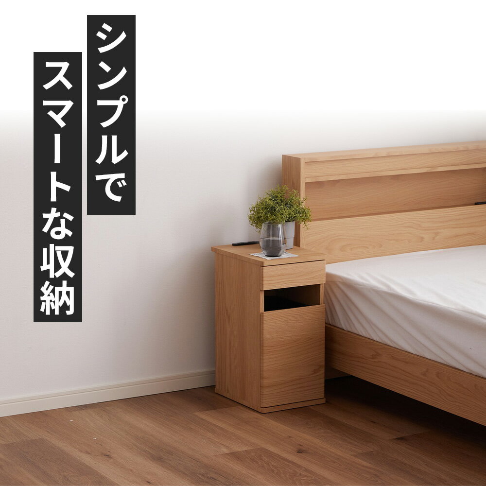 完成品 ゴミ箱付き サイドテーブル ベッド横 ソフトクローズ扉 大川家具 幅25cm スリム ベッドサイドテーブル ナイトテーブル ごみ箱 おしゃれ 収納 コンセント付 引き出し LU-955 ダストボックス スタイリー コンパクト ブラウン グレージュ