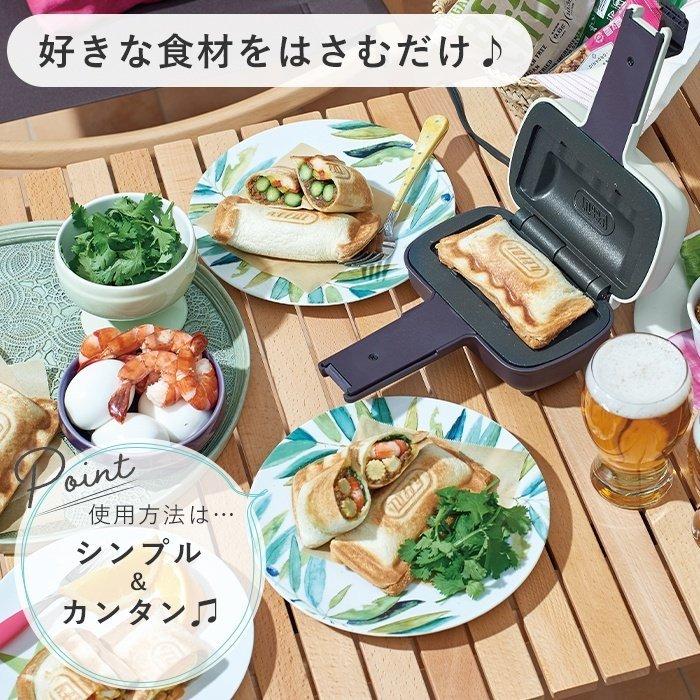 一枚の食パンを折りたたんで作る“ハーフホットサンド”ができる電気ホットサンドメーカー。 一枚で作るので、女性やお子様にもぴったりな嬉しい食べ切りサイズ。 パンを置いて好きな具材をはさむだけで、あっという間にハーフホットサンドが出来上がり。 ハム&チーズなどの定番ホットサンドから、様々な食材をはさんでバリエーション豊かに! 毎日の朝ごはんはもちろん、休日のランチやカフェタイムにまで大活躍! コンパクトサイズで立てて置けるため、ひとり暮らしのキッチンにもスッキリ収納できます。 品番 K-HS3 品名 Toffy ハーフホットサンドメーカー 本体寸法 約167(W)×96(H)×220(D)mm 重量 約750g 電源 AC100V 50-60Hz 定格消費電力 500W 電源コード長 約0.7m 付属品 ユーザーズガイド(保証書含む) ※送料は基本[無料]になります。 一部の地域・離島の条件によりましては別途追加料金が必要となります。 検索ワード 人気 おすすめ おしゃれ ランキング インスタ映え インスタ インスタグラム Instagram