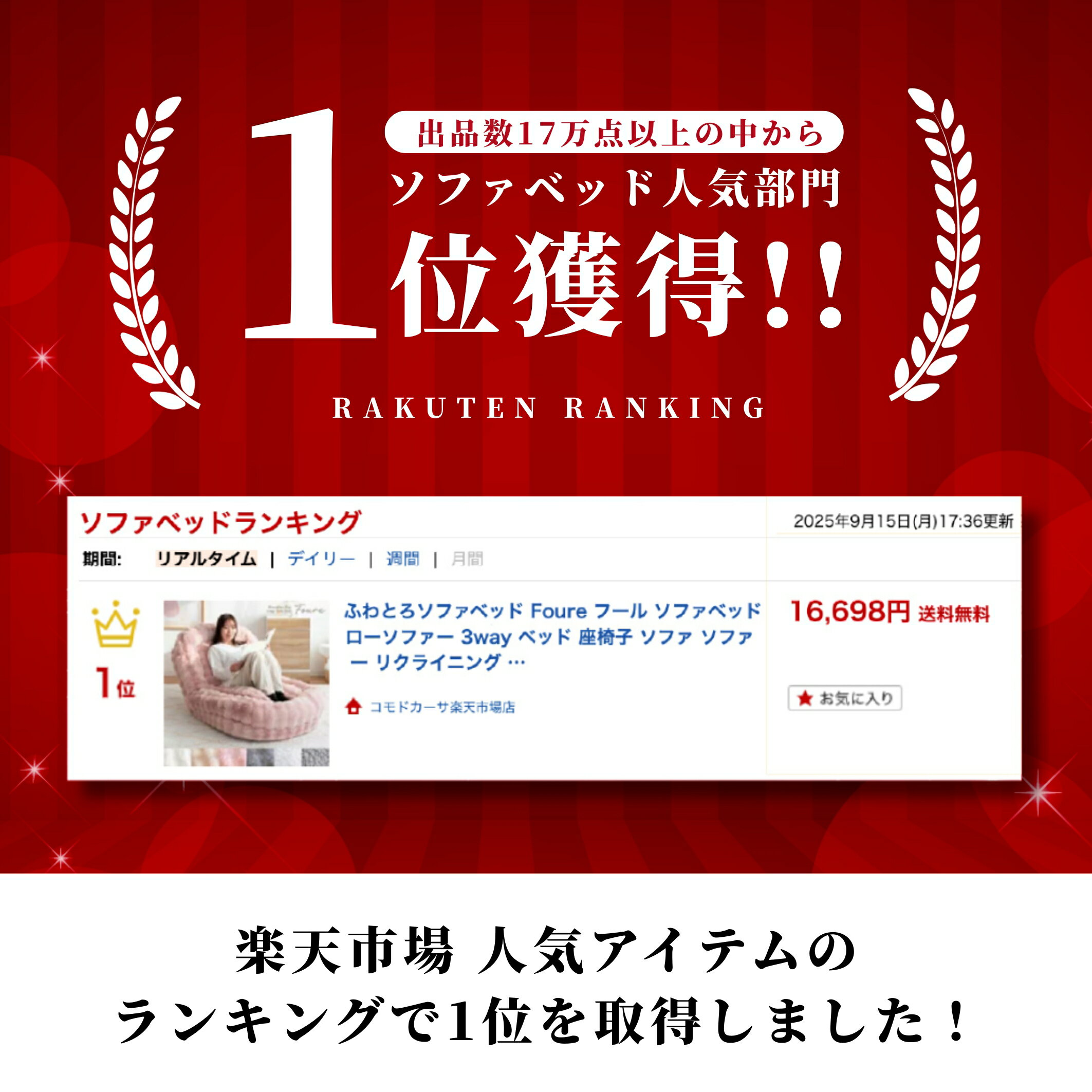 座椅子・ソファ・ベッドの3wayでお使いいただけて一日中過ごせる巣ごもりふわとろソファベッド『Foure(フール)』。とろけるような肌触りが気持ち良いマイクロファイバー生地とふかふかクッションがあなたを癒してくれます。 18段階フリーロックリクライニングでお好みの角度に調整可能。 サイズはコンパクトな幅70サイズ・来客用のベッドとして使える幅90サイズの2種類からお選びいただけます。 カラーはお部屋の雰囲気やお好みでお選びいただけます。 ◆サイズ コンパクトサイズ:幅70×奥行き77~130×高さ26~67cm 通常サイズ:幅90×奥行き115~165×高さ27~82cm ◆材質 ポリエステル、ウレタンフォーム、綿、ポケットコイル、スチール ◆備考 本体カバー上部・クッションカバーは手洗い洗濯可能 ※基本送料無料(沖縄県・北海道等・一部地域・離島等の条件によりましては別途送料が必要となります。) 検索ワード 検索ワードはありません。