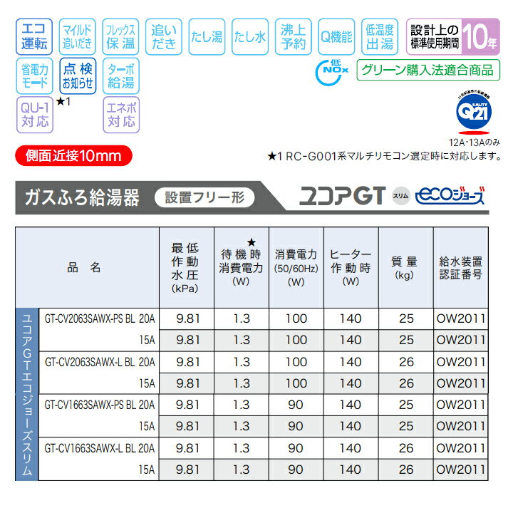 ●号数:20号 ●シンプル(オート)スリム ●側面近接10mm ●PRO-TECメカ 水量サーボ ●給水・給湯接続:R3/4(20A) ●給湯:36.7kW(2.62kg/h) ●ふろ:14.0kW(1.00kg/h) ●同時:36.7kW(2.62kg/h) ●排気方向を逆にする事もできます ●ガス種:プロパン(LPG) ◆商品型番 ・ノーリツ ・GT-CV2063SAWX-L BL 商品画像はイメージです。品番でのご注文となりますので、仕様やお色味などは事前にメーカーへご確認下さい。◆メーカー問合せ先 【ノーリツ0120-911-026】