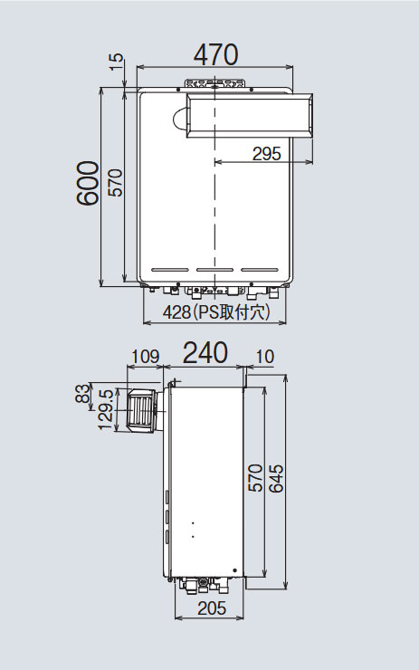 【RUF-E160EAA】リンナイ ガスふろ給湯機 設置フリータイプ RUF-Eシリーズ アルコーブ設置型(超高層耐風仕様) フルオート 16号 R3/4(20A) エコジョーズ プロパン RINNAI ※品番にて注文をさせていただきます。メーカーにて品番の確認をお願いいたします。画像はイメージです。 ●寸法(mm):高さ600×幅470×奥行240 ●左・右共通です。扉内設置の場合は、アルコーブ扉内アダプタを使用してください。
