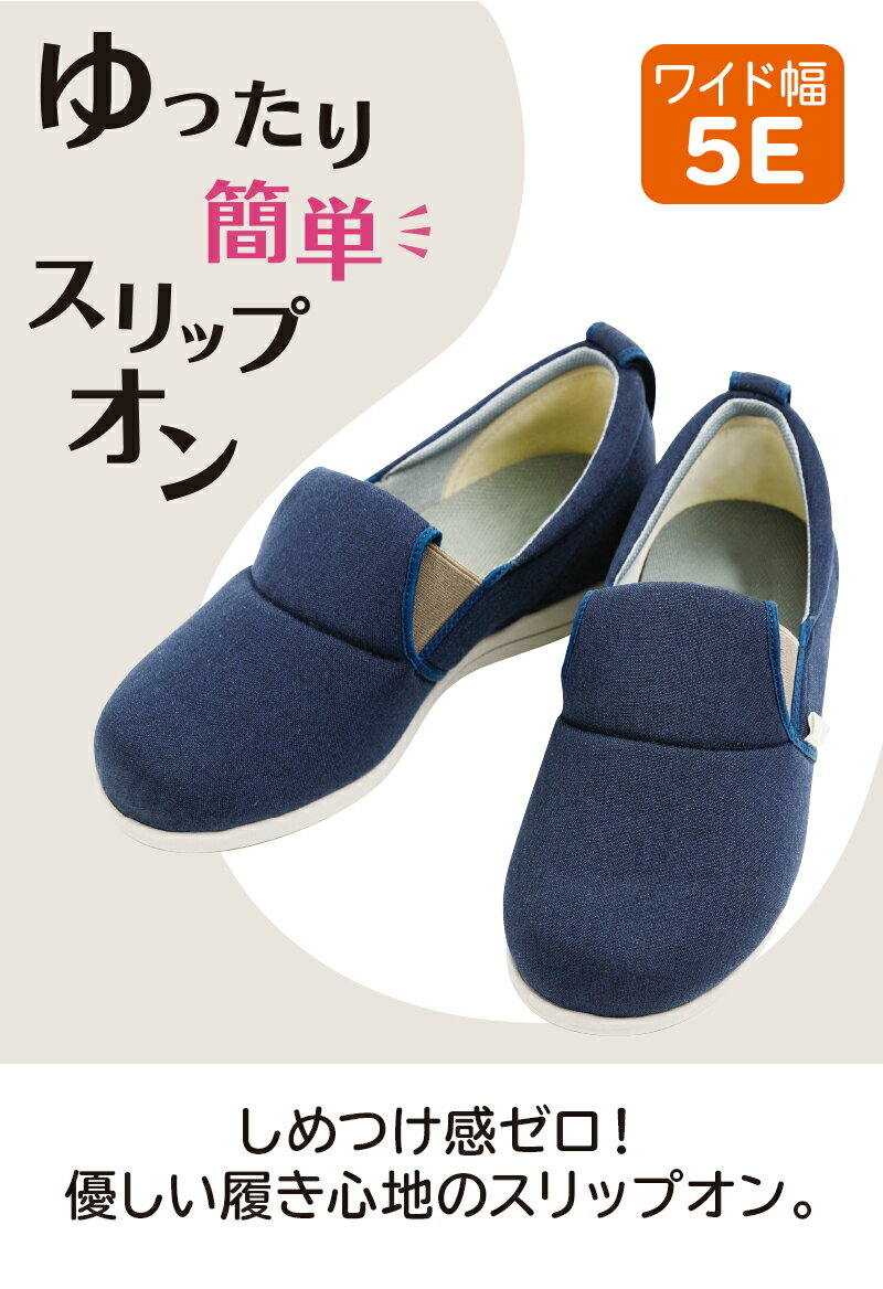 あゆみ スリッポン シューズ 靴 5E 医療 病院 施設 室内用 男女兼用 ゆったり簡単スリップオン 5E 【両足S~5L】ワイド ゆったり 撥水 手洗いOK 履きやすい 両足販売 ネイビー/ラズベリー 徳武産業