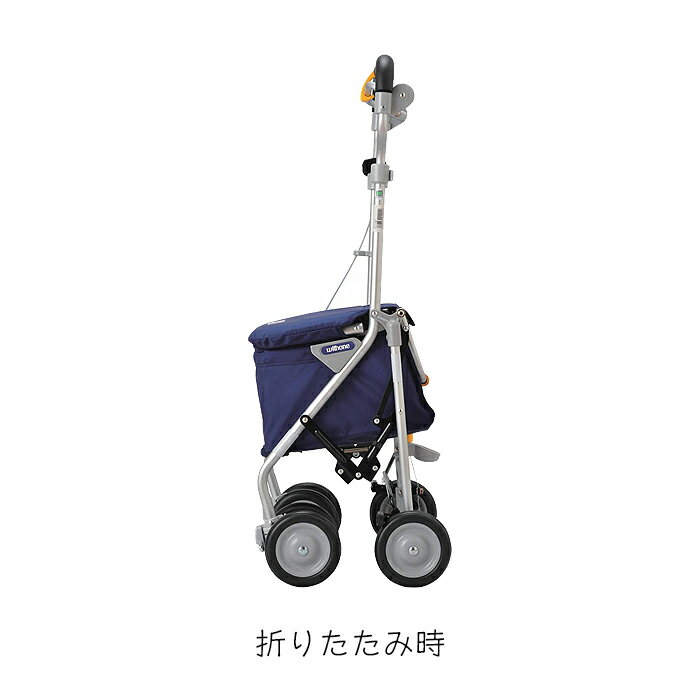 シルバーカー カート 手押し車 4輪 コンパクト 歩行 散歩 買い物 高齢者 敬老の日 ヘルスバッグ ライトミニ アンジェレッタ 【全幅40×全長56.5cm/ハンドル4段階】おしゃれ 軽量 シンプル 簡単 折りたたみ グレー/ネイビー ウィズワン【送料無料】
