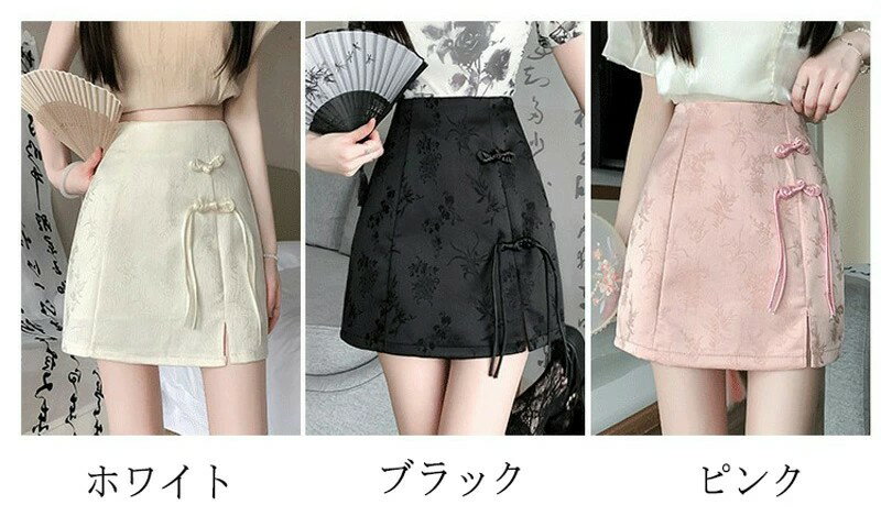 スリットミニスカート スカート レディース aラインスカート チャイナ風 スリット 花柄 ミニスカート 春 夏 ミニ丈 台形 aライン 可愛い フレア チャイナドレス 裏地付き カジュアル フェミニン 大人 通勤 通学 OL 大きいサイズ ファスナー 切替 お洒落 ハイウエスト