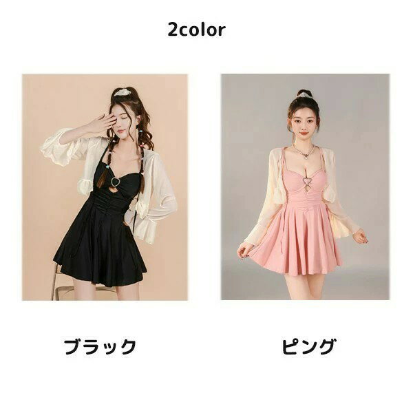 水着 レディース 体型カバー ピンク ブラック 2点セット 服みたいな ワンピース水着 ボレロ おしゃれ 大人 可愛い セクシー 小胸 バスト 盛れる オールインワン オトナ女子 ショートパンツ 温泉 露出控えめ 韓国風 女性用 20代 30代 40代 ラッシュガード