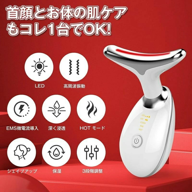 美顔器リフトアップ 超音波振動 3in1 フェイシャルネックケア LED光エステ USB充電式 3つモード多機能 持ち運び便利 自宅用美顔器 男女兼用 記念日 誕生日プレゼント