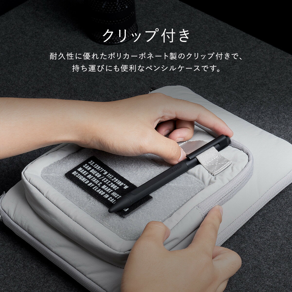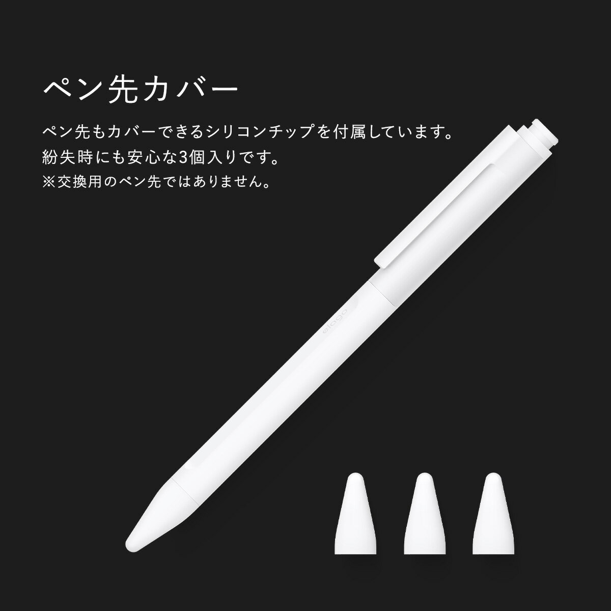 【製品仕様】… ◆ 対応機種 : Apple Pencil 2nd Gen ( アップルペンシル 第 2世代 ) ◆ 内容物 : ケース × 1個、シリコンチップ × 3個 ◆ サイズ : 約 16.6cm × 1.2cm × 1.5cm ◆ 重量 : 約 10g ◆ 素材 : シリコン、ポリカーボネート【製品特徴】… ◆ 装着したまま充電 : 可能 (iPadケース併用の場合は充電面が剥き出しのタイプのみ可能) ◆ ダブルタップ : 対応 ◆ ご注意1 : ※Apple Pencil 1st Gen には対応しておりません。 ◆ ご注意2 : ※ApplePencil(第2世代)の充電面を「MAGNETIC」と記載のある面に合わせて取り付けてください。他の面では充電されません。クリップ付き耐久性に優れたポリカーボネート製のクリップ付きで、持ち運びにも便利なペンシルケースです。ペン先カバーペン先もカバーできるシリコンチップを付属しています。紛失時にも安心な3個入りです。落下衝撃を軽減手になじむシリコン素材を使用することでグリップ感が増し、落下の衝撃からも保護します。