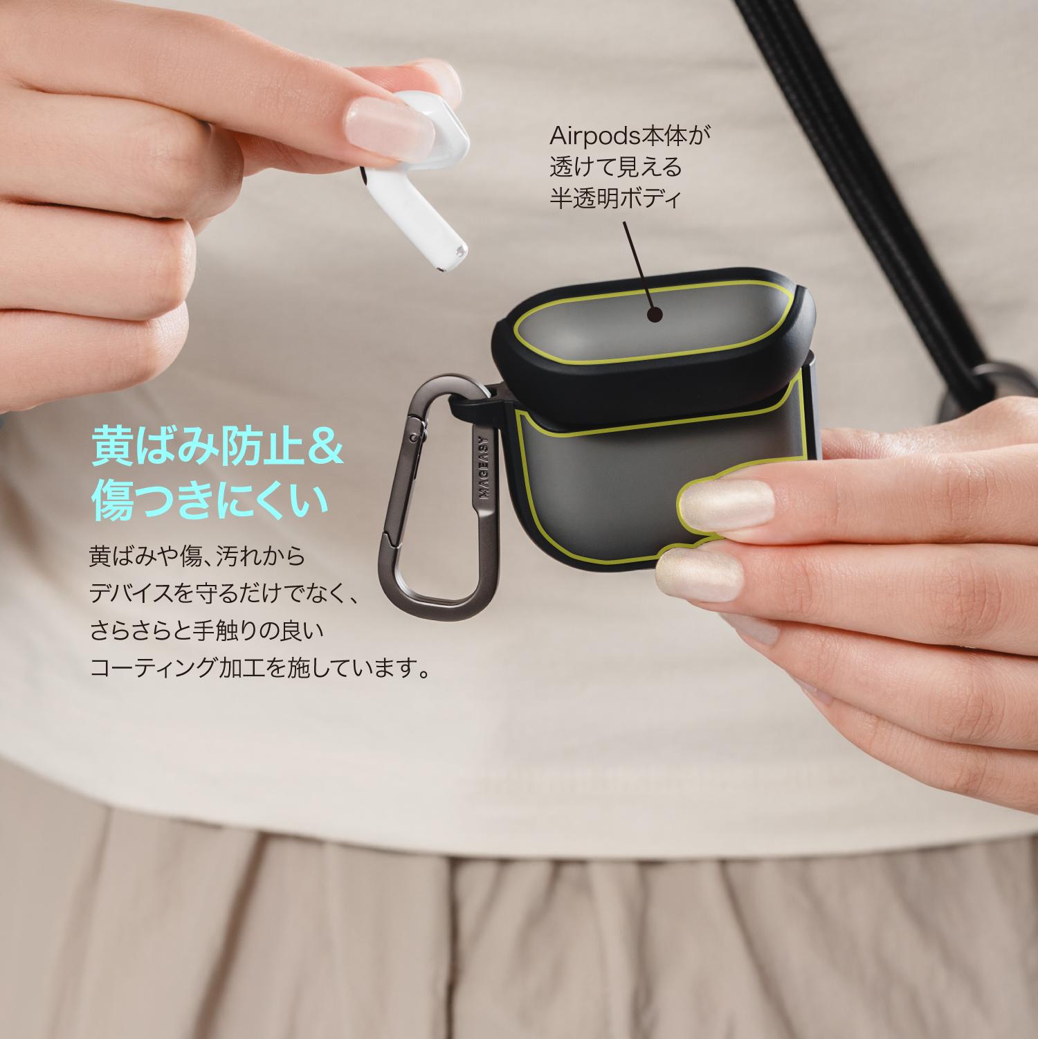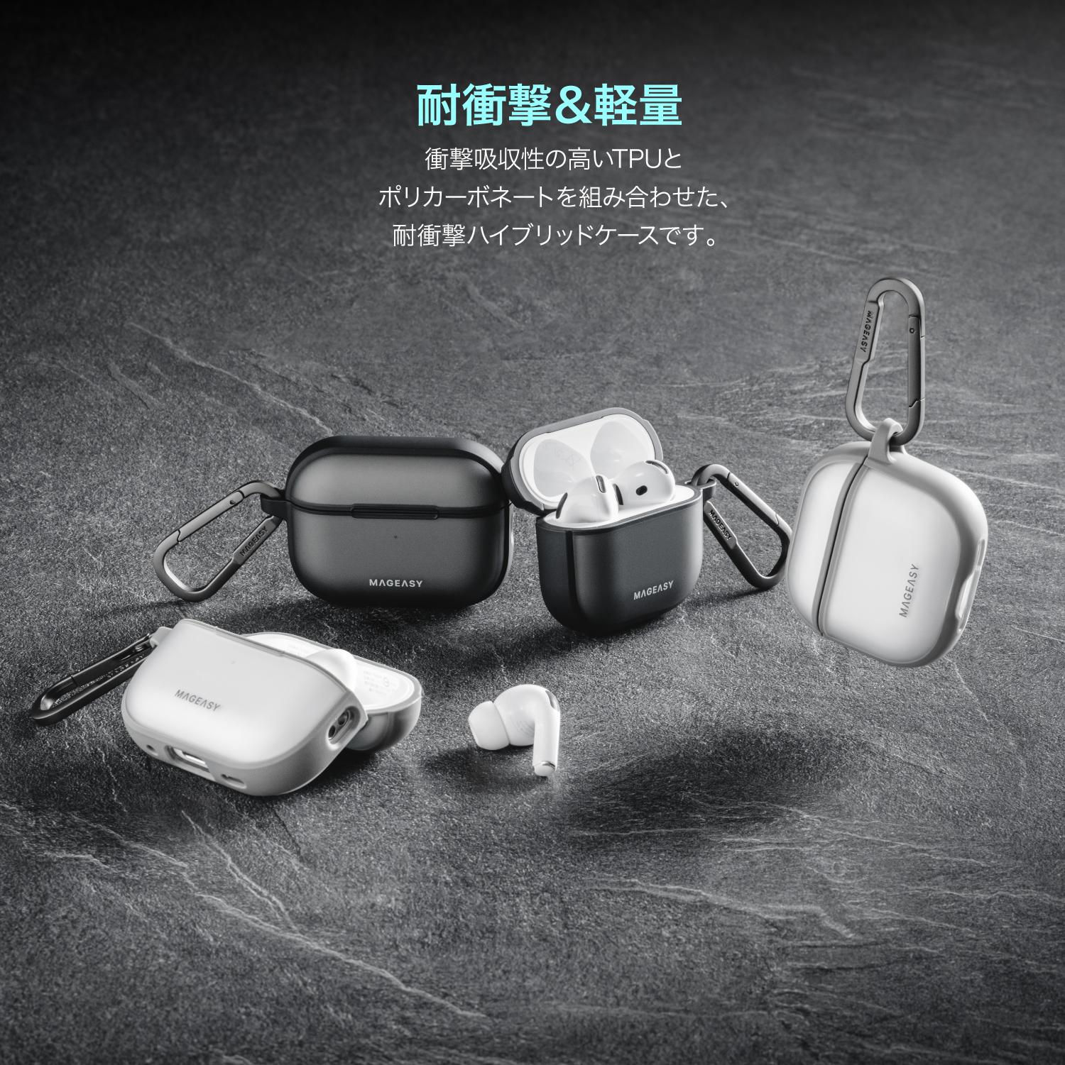 【製品仕様】… ◆ 対応機種 : Air Pods 4 ( エアポッツ4 ) ◆ 内容物 : ケース × 1個、カラビナ × 1個 ◆ サイズ : 約 5.2cm × 6.4cm × 2.6cm ◆ 重量 : 約 22g ◆ 素材 : ポリカーボネート、TPU【製品特徴】… ◆ Qiワイヤレス充電 : 対応(機器によって非対応の場合あり) ◆ 充電用LEDライト : 見える ◆ カラビナ : あり ◆ 充電口 : オープンカット ◆ 衝撃保護性能 : 高 ◆ ご注意 : ※カラビナを強く引っ張ると外れてしまう恐れがあります。また、ワイヤレス充電の際は、カラビナを必ず取り外してください。 ◆ ご注意 : ※磁石使用のため、医療機器などから十分な距離を保ってください。また、磁気による機器やデータ等への損害を負いかねます。耐衝撃&軽量衝撃吸収性の高いTPUとポリカーボネートを組み合わせた、耐衝撃ハイブリッドケースです。黄ばみ防止&傷つきにくい黄ばみや傷、汚れからデバイスを守るだけでなく、さらさらと手触りの良いコーティング加工を施しています。細部まで計算されたデザインデバイスに合わせた正確な設計により、デバイスとぴったりフィットします。