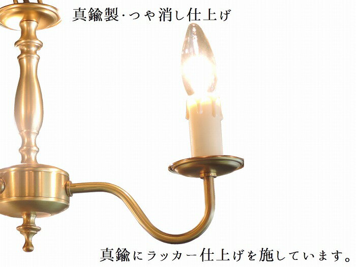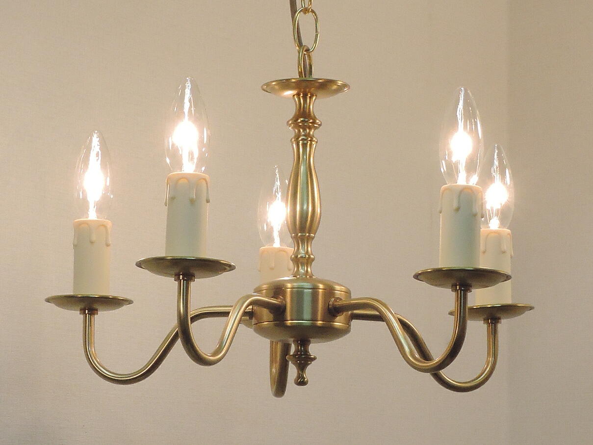 シャンデリア PB801/5 キャンドル型 真鍮 シンプル ダイニング 玄関 吹き抜け 階段 トラディショナル アンティーク風 レトロ 重い印象は与えず、どこでも使える チェーンを外して長さが調整可能