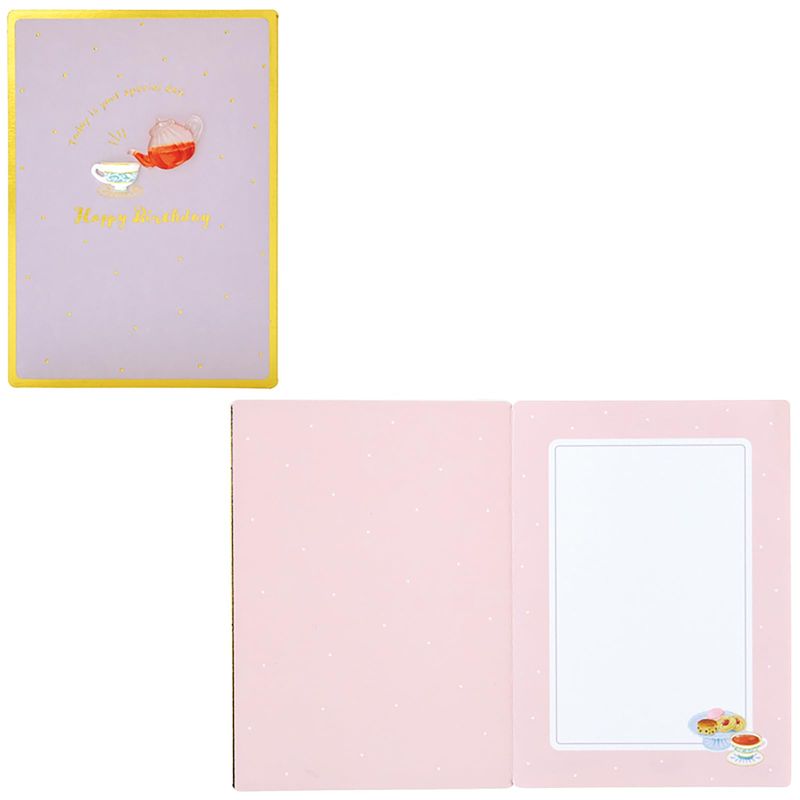 サンリオ バースデー BD167ー3 ED誕生日祝いカ−ド 950793 二つ折り 立体 紅茶 ポット カップ 金箔 くすみカラー ミニカード 誕生日祝い グリーティングカード