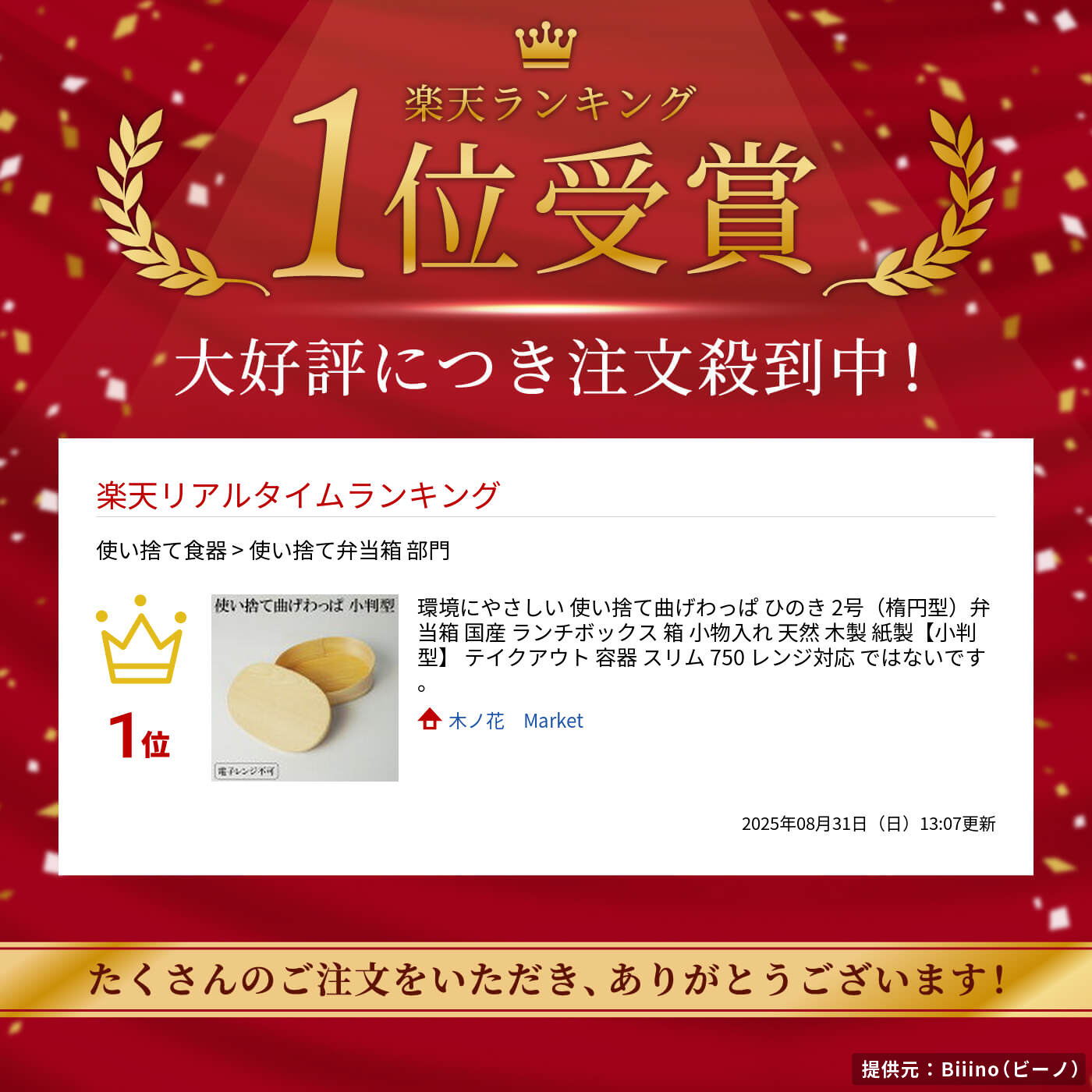 環境にやさしい 使い捨て曲げわっぱ ひのき 2号(楕円型)弁当箱 国産 ランチボックス 箱 小物入れ 天然 木製 紙製【小判型】 テイクアウト 容器 スリム 750 レンジ対応 ではないです。
