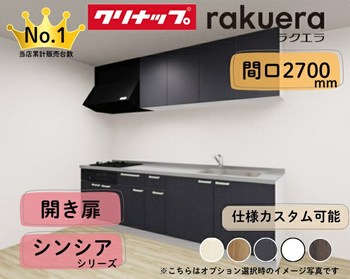 クリナップのシステムキッチン「ラクエラ」。キッチンは家具と考える。インテリアとのコーディネートを楽しむキッチン。おすすめ商品です。キッチンを彩る木や石の質感を再現した扉、シンプルな単色扉など26色をご用意。ワークトップもアクリストンやステンレスをラインナップ。ステンレス ワークトップは、錆びにくい、熱に強い、優れた強度などの特性があり、日本の風土に適した素材です。 お部屋に合わせた、あなただけの組み合わせが楽しめます。扉や取手、機器まわり、ワークトップやシンクまで家具調のキッチンにこだわりました。家具調のキッチン、大容量の収納、扉と連動する内引き出し、お手入れ簡単なワークトップとシンク、 静かでスムーズな引き心地の「サイレントレール」。収納もたっぷり。従来のグリル部分が、収納スペースとして活用できます。選択肢記載の換気扇追加金額はすべて横幕板1枚を含む価格となっております。加熱機器無しをご選択の場合、加熱機器は現場支給とみなしまして穴あけ加工ありで手配いたします。万が一穴無しでのご手配をご希望の場合は「ストアへのご要望」欄に必ず「加熱機器穴無し希望」とご記入ください。※定価、販売価格には、加熱機器・レンジフード・水栓の価格が含まれていない金額となりますのでご注意ください。選択項目からご希望の商品をお選びください。また、システム上、販売価格にお選び頂いた商品の金額が加算してない場合は、後日、メールでご案内致します。 ■I型 間口225cm ■シンシアシリーズ全5色[対応取手:L] トーンホワイト[CAT]/トーンチャコール[CAZ]ペールウッド[C4V]/モカウッド[C4B]/チャコールウッド[E4Z] ■標準:サイレントレール ■ワークトップ [シンク]【標準】ステンレス【追加オプション】美・サイレントシンク [天板]【標準】ステンレスワークトップ【追加オプション】アクリストンワークトップ カラー:シュガーホワイト(C)/クレマホワイト(X)/フォスキアグレー(S) ■キャビネット ベースキャビネットコンロキャビネット 点検口・見切り板付(奥行60cmは点検口なし) ■水栓金具【追加オプション】 シングルレバー水栓/ZZKM5111TCLE(一般地)・ZZKM5111ZTCLE(寒冷地)シャワーホース付水栓/ZZKM5031TECCL-E(一般地)・ZZKM5031ZTECCL-E(寒冷地)浄水器一体型 省エネシングル水栓/ZSMJT428R20BH-E(一般地)・ZSMJT428R20BW-E(寒冷地) ■調理機器 ガスコンロ/IH【追加オプション】 ホーロートップコンロ(水無片面焼き)/ZGFNK6R18NKE-E(ブラック/ブラック)ホーロートップコンロ(水無片面焼き)/ZGFNK6R18QSE-E(シルバー/ブラック)ガラストップコンロ(水無両面焼き)/ZGGVK6A24NKK-E(ブラック/ブラック)ガラストップコンロ(水無両面焼き)/ZGGVK6A24QSS-E(シルバー/シルバー) 2口IH+ラジエントヒーター(水無両面焼き)/ZZCSG318M-E(シルバー/ブラック)2口IH+ラジエントヒーター(水無両面焼き)/ZZCSG318MS-E(シルバー/シルバー)2口IH+ラジエントヒーター(水無両面焼き)/ZZHTSK6AKK-E(ブラック/ブラック) ■レンジフード【追加オプション】 ・シロッコファンZRS75NB(C/D)20FKZ-E(ブラック)ZRS75NB(C/D)20FSZ-E(シルバー)・フラットスリムレンジフード:ZRS75ABZ21FS(R/L)-E(シルバー) 【ご購入について】 商品ご購入後、メーカープランと仕様図をメールで送らせていただきます。プラン内容と図面を確認頂き、サイズや内容に問題がないか、取り付け可能か、設置場所まで運べるか等をご確認ください。お客様にご了承を頂きましたら、メーカーに手配いたします。受注生産品のため、メーカーに手配してから納入まで、実働約2〜3週間程度頂いております。 【注意事項】 こちらは商品のみの販売です。※工事費は含まれていません。受注生産のためご注文確定後の商品の変更やキャンセルは不可となります。よくご確認の上ご注文下さい。※ご不明な点がございましたら、メールかファックスにてお気軽にご相談下さい。 【メーカーによる取付設置工事を希望の場合】 メーカー指定の責任施工(組立のみ)で全国対応可能です。(一部地域を除く)メーカーによる取付設置工事はシステムキッチン本体のみの設置組立となりますので、 大工工事、土間工事、管工事、電気工事、内装工事などは別途現地手配でお願いします。 現地手配業者様へ図面・プランニングをお見せするようお願いいたします。 図面には商品寸法、給排水位置、ガス配管位置、コンセント取付位置など設置に必要な内容が記入されております。 (設置・取付位置など図面内容と異なる場合設置できない可能性もございます)メーカーによる取付設置工事は設置出来る状態での現場入りとなります。 別途現地手配による設置に必要な工事が終了していない場合取付けが出来ませんのでご注意ください。メーカーによる取付設置工事は、別途料金がかかります。その際は、備考欄にメーカー施工希望とご記載ください。 その他仕様へのご変更もお請けできますのでメールかファックスにてお問い合わせくださいませ。 メーカー希望小売価格はメーカーカタログに基づい