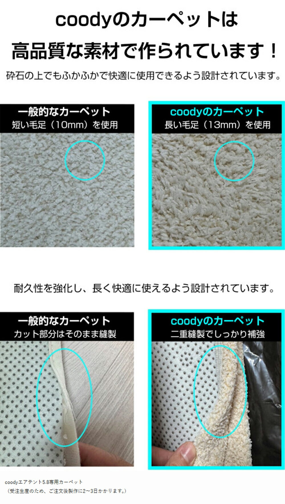 coody エアテント5.8専用 カーペット【日本公式ストア】国内保証対応【選べる2タイプ】インナーマット ラグ フロアマット 滑り止め加工 毛足13mm ふかふか お座敷スタイル 冬キャンプ 防寒 ソロキャンプ
