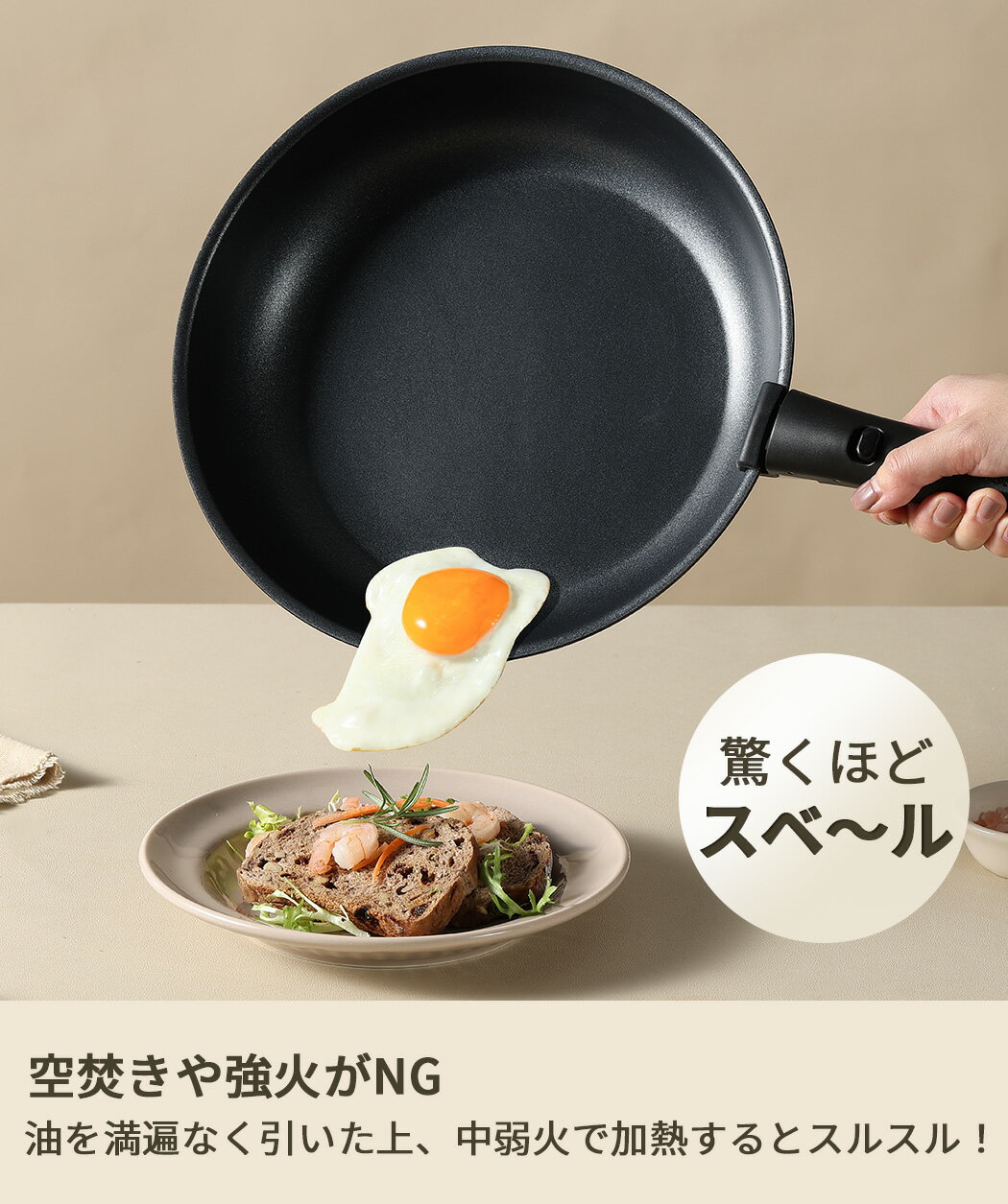 🍀【健康素材・安全安心】体に悪影響を与える PFOA・PFOS・鉛・カドミウムなどを一切使用しません。人間と地球環境に優しい材料が使われています。 👍【着脱式専用取っ手】簡単に取り外せる専用取っ手、いろんなシーンに合わせて便利に使えます。取っ手が邪魔にならないため、スペースが限られた場所にも収納できます。調理後は、鍋敷きを置いた食卓に出すことも可能です 🍳【軽量化に工夫】変形に強くて耐久性に優れています。軽量設計されたため、お調理の時もお手入れの時も非常に使いやすく手が疲れにくいです 🍳【快適な調理体験】コーティングをしているため、焦げ付きにくくスムーズに調理できます。調理後もスポンジで軽く拭くだけで、汚れもスルッと落ちます 🌞【対応熱源】IH(100V・200V)、 ガスコンロ、 ラジエンヒーター 、エンクローヒーター 、シーズヒーター等オール熱源対応;※電子レンジ&食洗機非対応 🔧【1年保証】保証期間は、お買い上げ後1年間です。注意事項に従った使用状態で保証期間内に故障した場合には、返品・返金・交換でご対応させていただきます。 【取っ手がもう一本欲しい】:取っ手の単品の購入へ