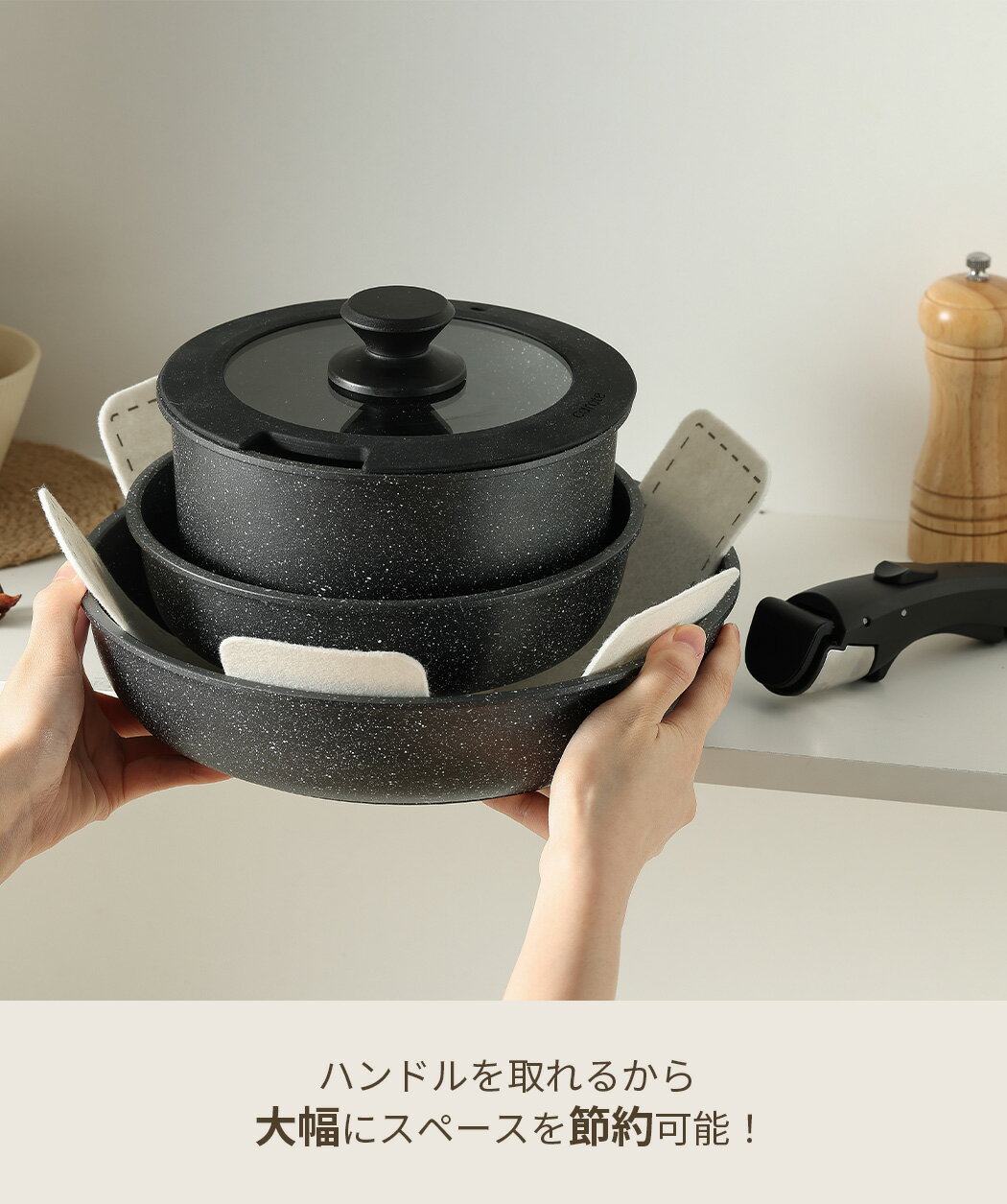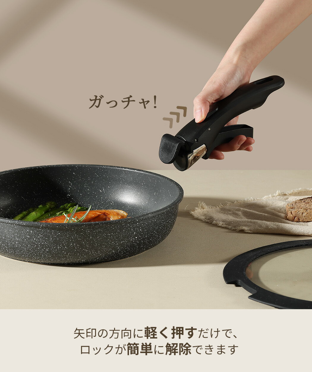 🥞【着脱式専用取っ手】簡単に取り外せる専用取っ手、いろんなシーンに合わせて便利に使えます。取っ手が邪魔にならないため、スペースが限られた場所にも収納できます。調理後は、鍋敷きを置いた食卓に出すことも可能です 💘【可愛い見た目】可愛く作られているので、キッチンの インテリアにも ピッタリ! 🥞【材質】食品グレードゴム、ステンレス、フェノール樹脂・ナイロン耐熱温度:150℃ 📏【注意】大範囲での水洗いはお勧めしません。湿った布で汚れを拭き取ることを推奨します。 水洗いによって金属部分が錆びる可能性があり、使用感に影響を与えることがあります。 🌞【対応鍋類】CAROTE製取っ手取れるフライパン&鍋※他社の商品に対応すると保証できかねますので、ご了承の程お願い致します。